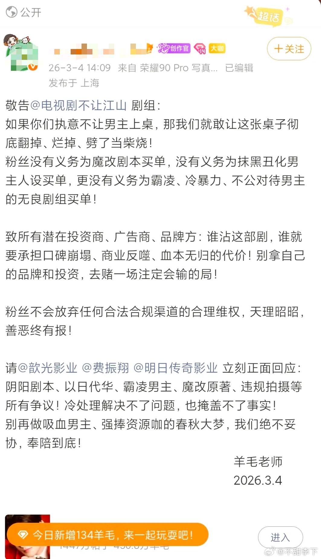 这个落款羊毛老师太幽默了真的
