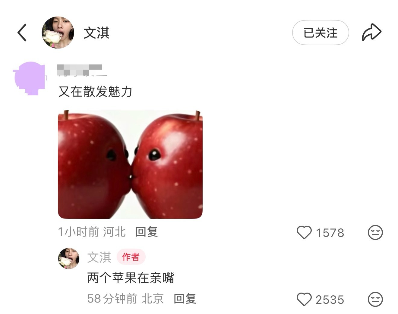 我真的很难不爱文淇她今天更新粉丝给她评论的