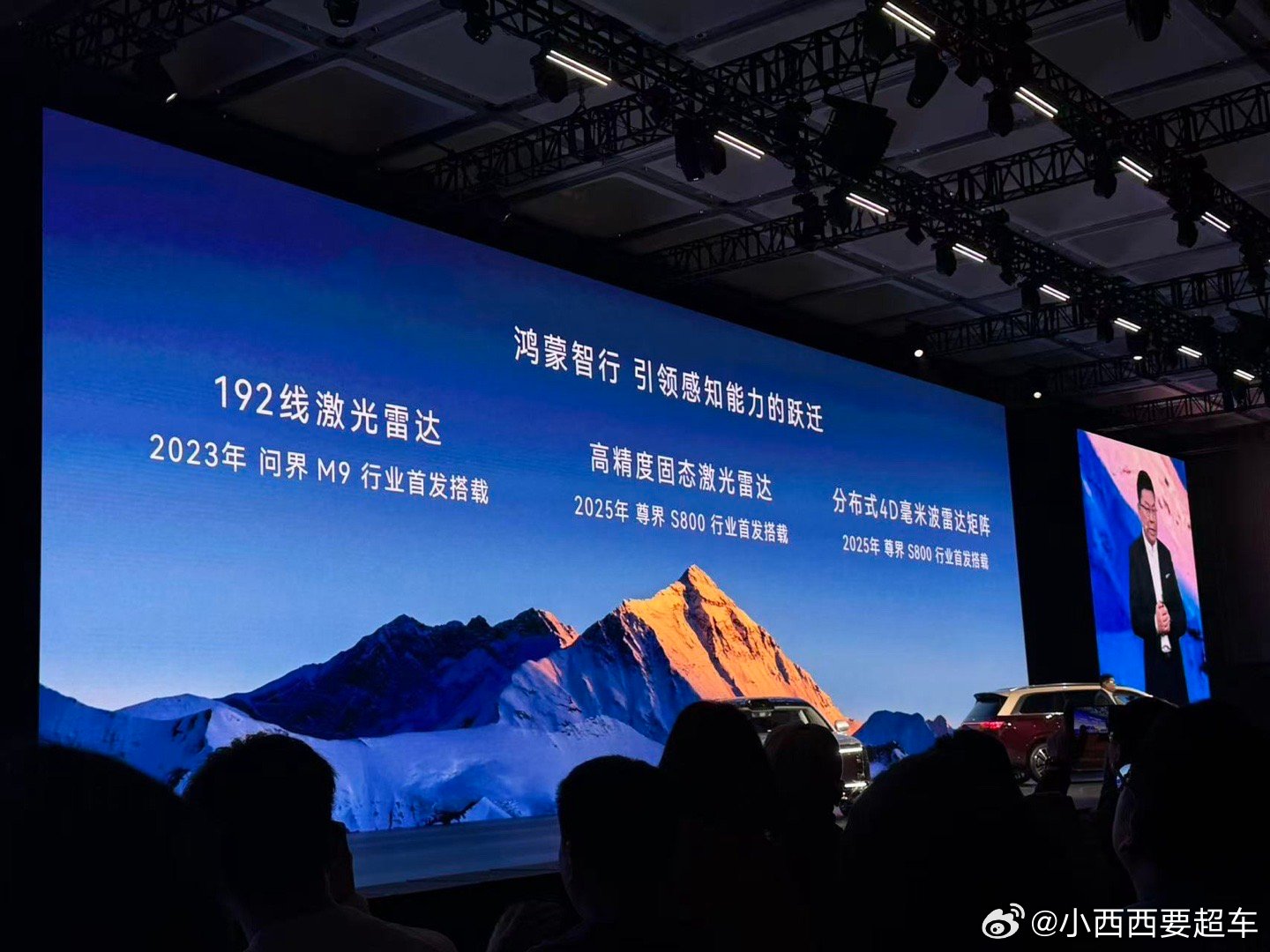 针对复杂路况,这一波技术再升级!尊界S800的全方位立体融合感知系统继续升级,搭配华为乾崑智驾ADS 4.1和双光路图像级激光雷达,远距离精准识别细小、低矮等较难识别障碍物~安全又加码了尊界融合感知能力断代领先