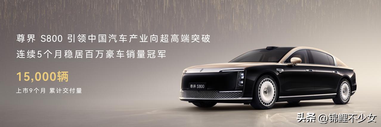 鸿蒙智行时代旗舰尊界S800上市9个月累计交付量超15000辆,连续5个月稳居百万豪车销量冠军,引领中国汽车产业向超高端突破。数据显示,2025年9月至2026年1月累计上险量中,尊界S800以13092辆的成绩超越第二、三名总和,重新定义新时代超高端豪华新标准。