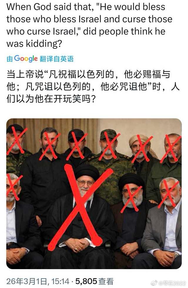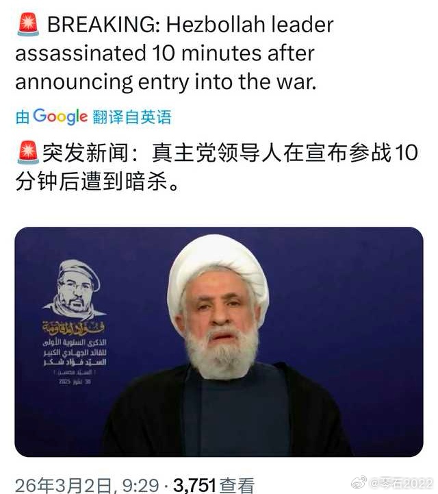 特朗普称已打死48名伊朗领导层人物现在活着有名的除了内贾德,还有拉里和佩泽🔻三人小组会议至少已经开了两轮图3,昨天专家投票大楼又被轰塌了,鱿鱼的想法是让其难产,群龙无首从而被各个击破。🔻说哈梅内伊的儿子已经被清除图4,今天却传出已经被选为新领袖。之前鱿鱼很多新闻,都是浑水摸鱼,是舆论战一部分,打击伊朗国内政治生态,分裂组织和瓦解斗争意志的手段。🔻真主党领导人被暗杀?图5图6实际上和穆杰塔巴的媒体发布一样。早在战前就传闻真主党领导人已经换成革命卫队将领,这就已经注定鱿鱼早晚要入侵黎巴嫩。所以,鱿鱼和西方的东西,还是让子弹多飞一会儿吧!