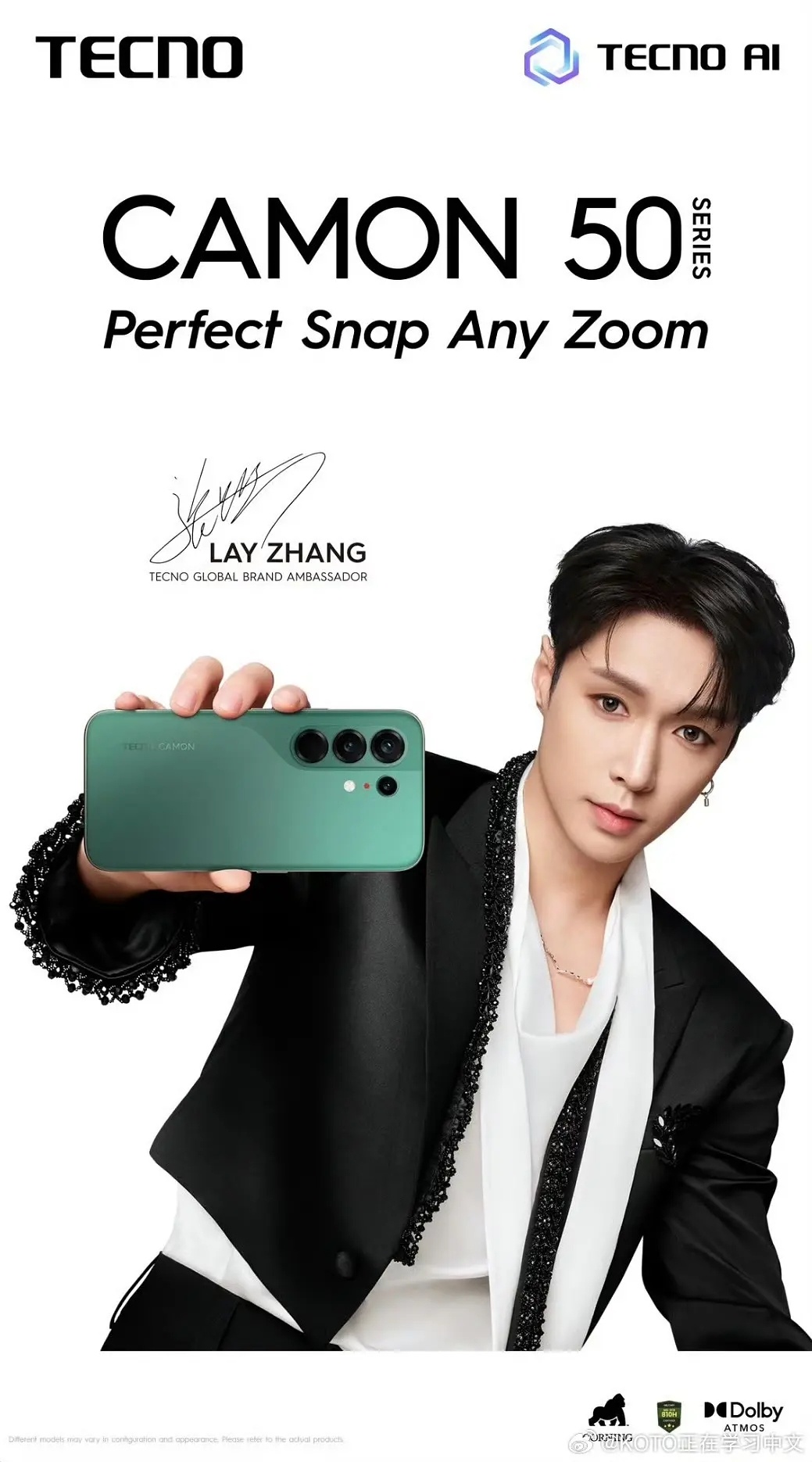 恭喜张艺兴续约传音,传音为全球四大手机之一今天新出的海报也很帅