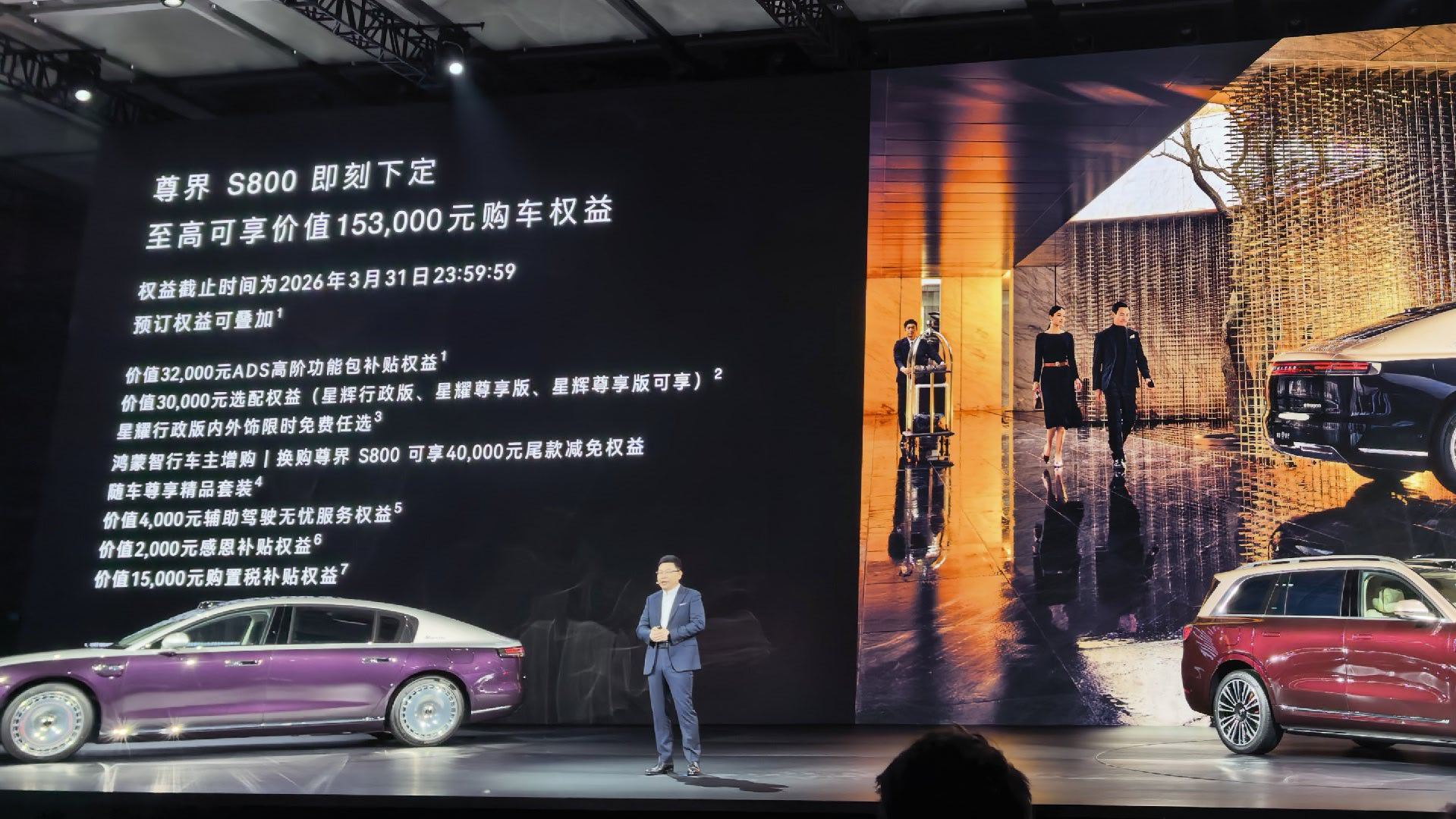 还可享1.5万元购置税补贴,产品选配金权益、ADS高阶包补贴等多重权益,权益于2026年3月31日截止!华为发布会