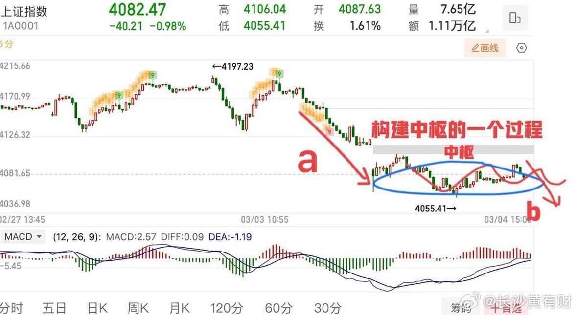 下午破4061后有一个弱反抽,实际上就是构建小中枢的一个过程,算是一个下跌缓冲降速的一个过程,调整未结束。小级别上看,小中枢形成之后,再观察往下的空头力度与速度,与第一段进行比较,如果往下速度弱于前下跌段则还会有回拉的过程,压力上方的均线以及缺口(4006)。