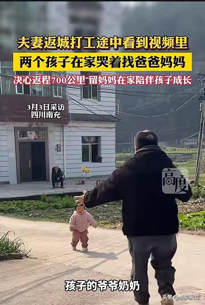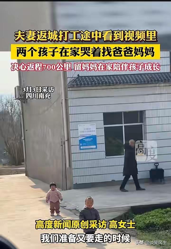 返程 700 公里突接视频,龙凤胎哭喊声让夫妻当场崩溃:掉头回家!这一转,转醒了多少打工人的梦!“爸爸、妈妈,不要走……" 屏幕那头,两个刚满三岁的孩子哭得撕心裂肺,小脸涨得通红,泪水像断了线的珠子一样往下掉。这声音透过手机听筒传出来,像是一把锋利的尖刀,瞬间刺穿了高女士和丈夫构筑了一路的心理防线。 此时,他们的车已经行驶在离四川南充老家 700 多公里的高速公路上。窗外是飞速后退的风景,车内原本还盘算着新一年的打工计划:多干点活,多挣点钱,给家里的龙凤胎换个好点的幼儿园,再存钱翻修老屋。然而,当爷爷奶奶拨通那个视频电话的瞬间,所有的“未来规划”都在孩子绝望的哭喊声中崩塌了。 高女士的眼泪夺眶而出,握着方向盘的手止不住地颤抖。坐在副驾驶的丈夫红着眼眶,沉默了仅仅几秒,便从牙缝里挤出几个字:“掉头,回家!” 没有犹豫,没有商量,甚至没有考虑已经开出去的路程和即将损失的路费。方向盘猛地一转,车头调转,这辆承载着无数打工人心酸与希望的车,重新驶向了家的方向。700 公里的路,来时满怀憧憬,归去却是满心愧疚与急切。 这对夫妻的故事,是千万中国外出务工家庭的真实缩影。每年春节过后,这样的离别都在全国各地上演。为了碎银几两,为了给孩子一个所谓的“更好未来”,父母们不得不狠心将年幼的孩子留给老人,背起行囊远走他乡。他们总以为,孩子还小,不懂事,等长大了就明白了父母的苦心。可现实却给了他们最沉重的一击:孩子不是不懂,他们是太懂了。 三岁的龙凤胎,正是最依恋父母、最需要安全感的年纪。他们或许无法用语言完整表达思念,但那撕心裂肺的哭声,就是最无声的控诉。在高女士夫妇看来,这 700 公里的距离,隔开的不仅仅是地理上的空间,更是孩子童年里最珍贵的亲子时光。 当他们风尘仆仆地推开家门,两个孩子像两只受惊后终于找到依靠的小兽,疯了一样扑进怀里,死死抱住不肯撒手。那一刻,所有的疲惫、纠结、对收入的焦虑,都化作了满心的酸楚与温暖。高女士紧紧搂着孩子,在心里默默做了一个决定:这次,再也不走了。 经过深思熟虑,夫妻俩达成了一个令人心酸却又无比坚定的共识:妻子留在家里全职照顾孩子,丈夫独自继续外出务工,扛起整个家庭的经济重担。 这个决定意味着什么?意味着家里的收入将减半,意味着丈夫肩上的担子会更重,意味着生活的压力会成倍增加。但在“赚钱”和“陪伴”这道选择题面前,他们毫不犹豫地选择了后者。高女士说:“童年就那么几年,一旦错过了,花再多钱也买不回来。我们拼命工作是为了孩子,可如果孩子的未来里没有父母的陪伴,那这一切又有什么意义?” 这句话,戳中了多少人的泪点? 在这个快节奏的时代,我们听过太多“拿起砖头抱不了你,放下砖头养不起你”的无奈叹息。无数父母在现实的夹缝中挣扎,试图在生存与生活之间寻找平衡,却往往顾此失彼。我们总想着等孩子大一点、等手头宽裕一点、等忙完这一阵,再好好陪陪孩子。可是,孩子的成长是一场无法回放的单程电影,那些缺失的拥抱、缺席的家长会、错过的第一次走路和第一次说话,将成为父母心中永远无法弥补的遗憾。 高女士夫妇的“掉头”,看似是一次冲动的行为艺术,实则是为人父母最本能的觉醒。它告诉我们:钱可以慢慢挣,路可以慢慢走,但孩子的童年,真的等不起。 这不仅仅是一个关于四川南充夫妻的故事,它是写给所有在外漂泊的打工人的警示录。我们常常误以为,给孩子提供优越的物质条件就是爱,却忽略了孩子内心最渴望的,不过是爸爸妈妈温暖的怀抱和朝夕相处的安全感。 或许,并不是每个家庭都有条件让一方留守,每个人的处境都有不同的难处。但至少,这个故事提醒我们:在奔波劳碌的间隙,请多给孩子打一个视频电话,多听听他们的声音;在可能的情况下,尽量缩短分离的时间,不要让“等待”成为孩子童年的主旋律。 平凡的日子里,一家人整整齐齐,哪怕粗茶淡饭,只要心里有牵挂,身边有温暖,这就是最踏实的幸福。愿每一个在外打拼的父母,都能在孩子需要的时候,及时出现在他们身边;愿每一个留守儿童,都能被温柔以待,不再对着空荡荡的房间哭泣。多胎龙凤胎 龙凤胎寻亲