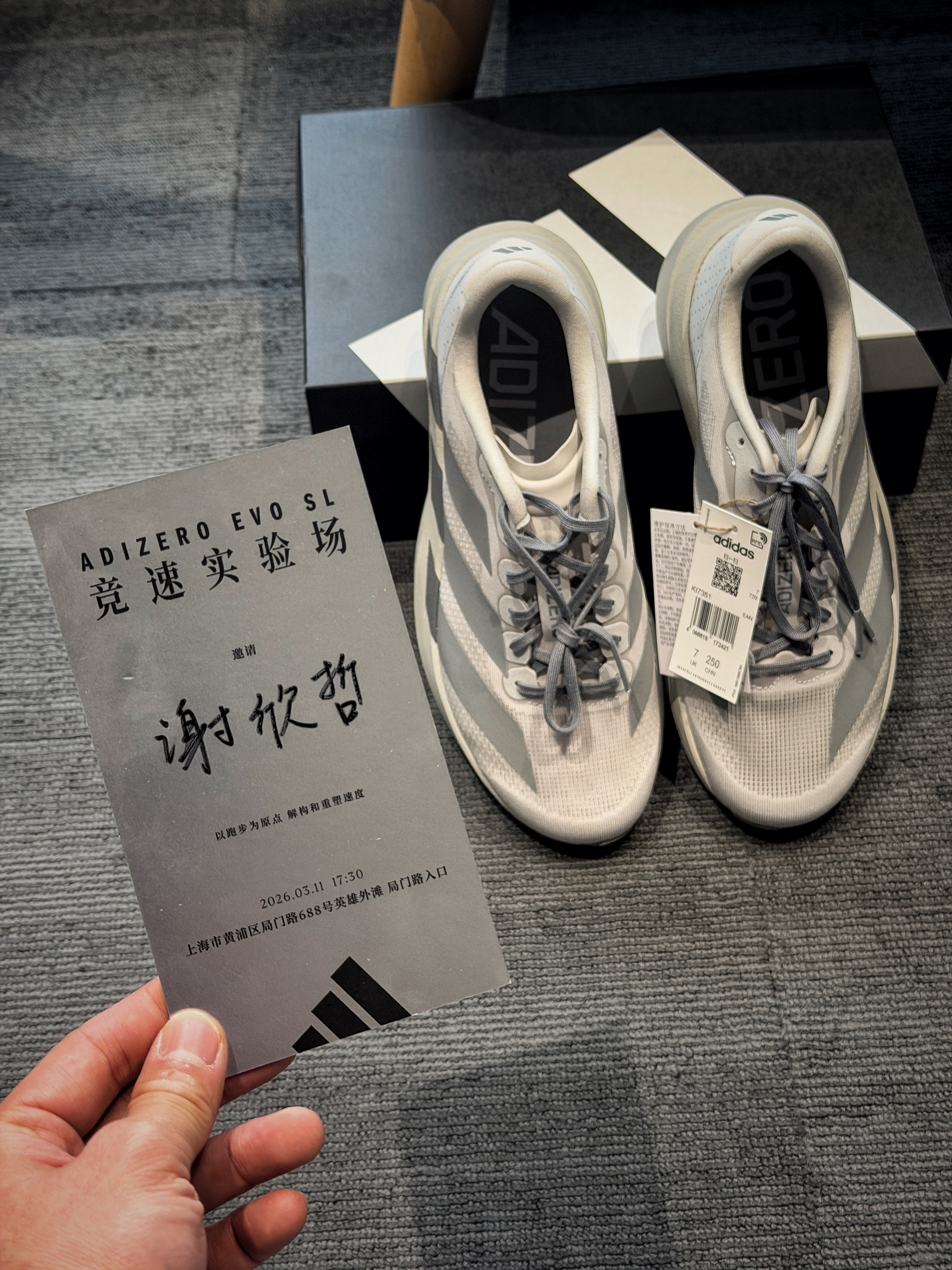 Adidas最新的ADIZERO EVO SL竞速跑鞋收到了。确实十分轻,看鞋底还是和轮胎品牌Continental的联名,抓地力应该不错。回头活动我去会会,看是什么玩儿法 欣哲频道
