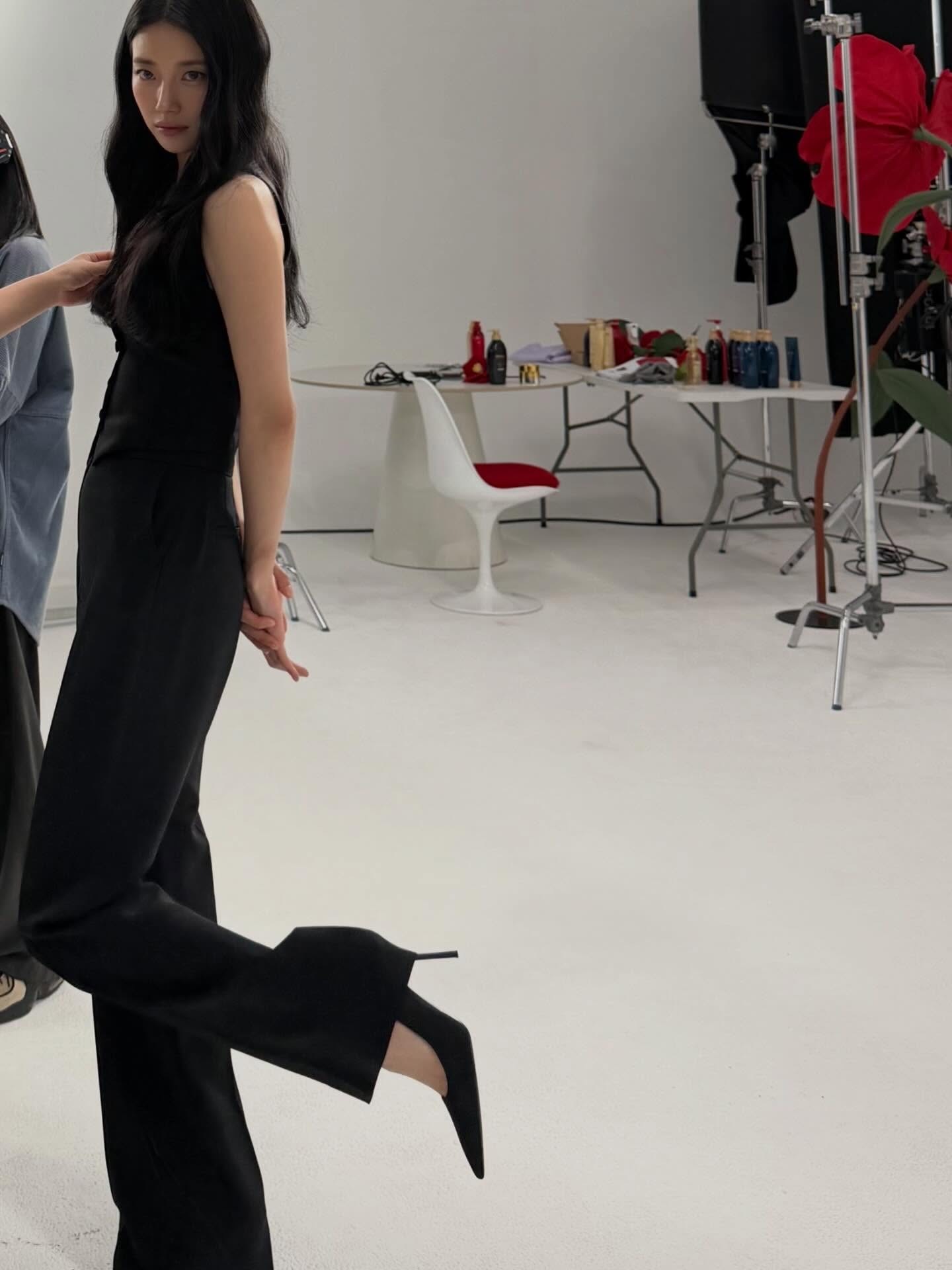 刘亦菲这条裤子挺养生,毕竟降温了肚脐眼必须护住啊