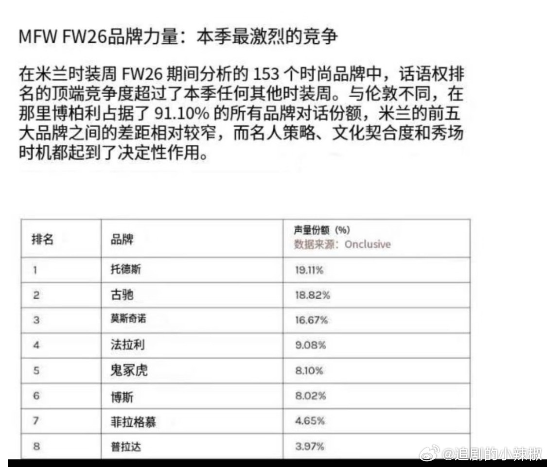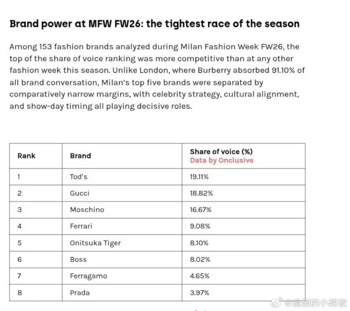 外媒发布2026时装周品牌声量,肖战代言的双高奢品牌霸榜一二名