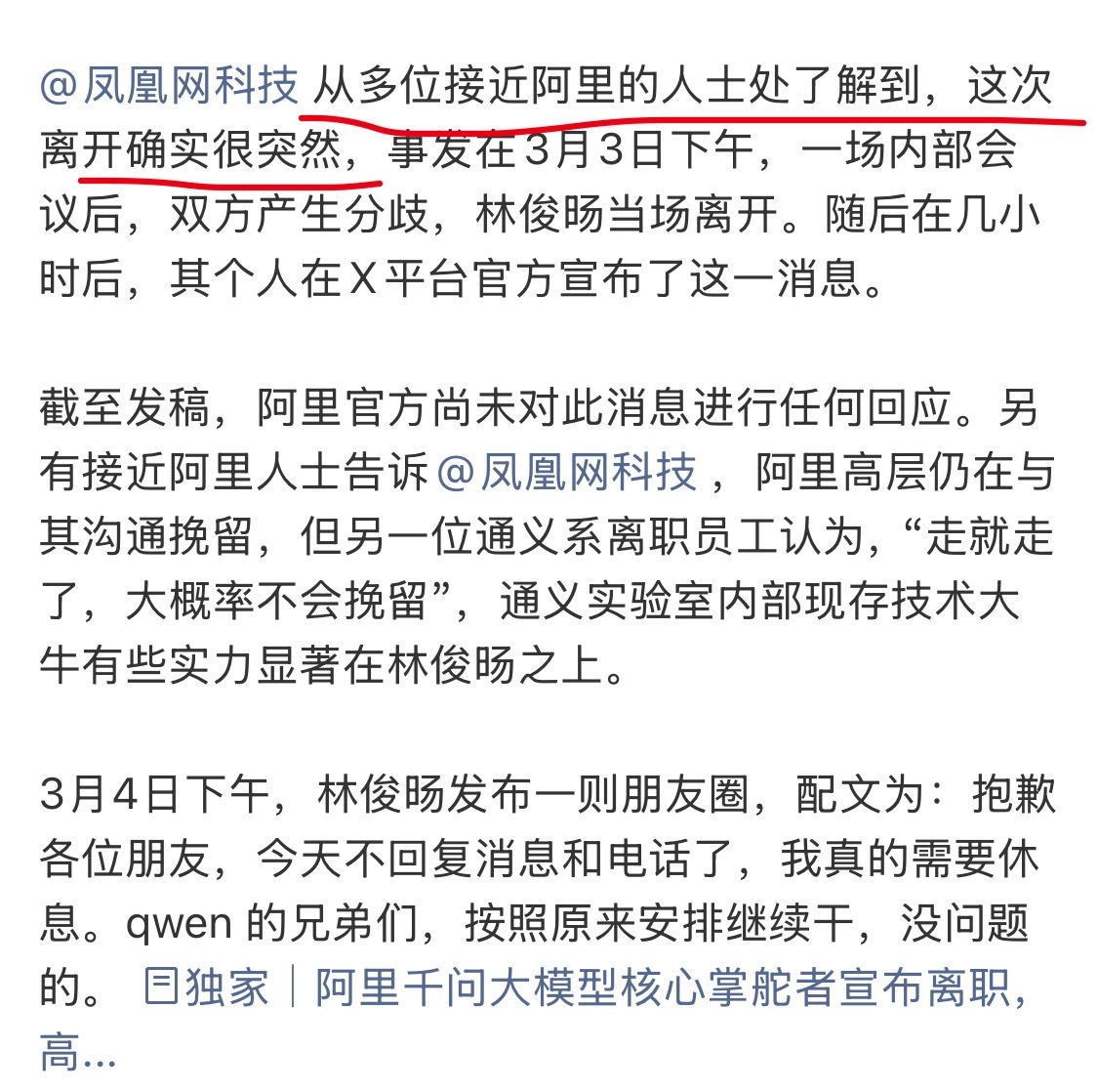 阿里已批准林俊旸离职现在又流传了一个小作文,我认为这是在泼污水,AI模型开发圈子
