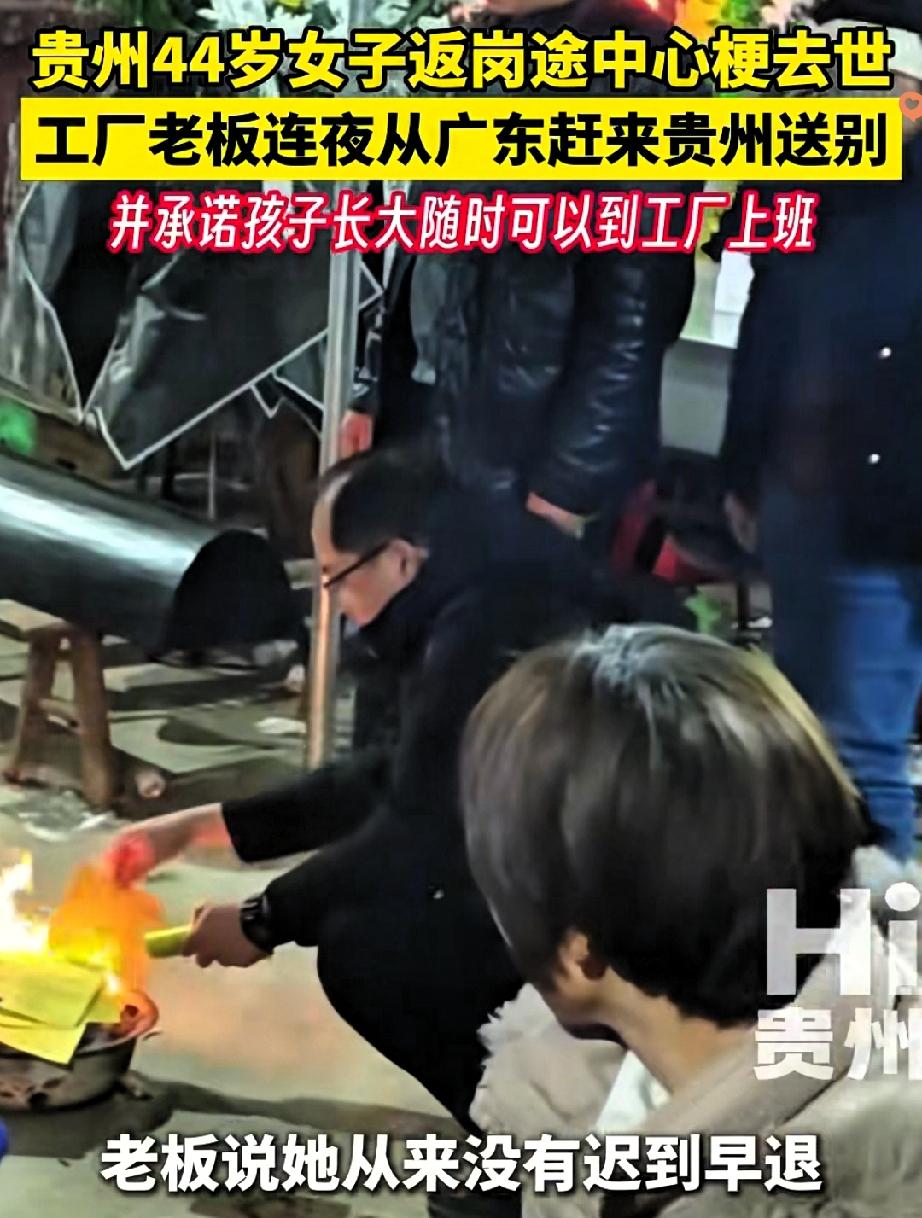 贵州练大姐15年兢兢业业的付出,终究换来了最珍贵的双向奔赴。 初七返工途中突发心梗离世,家属随口告知老板,本以为只是客套回应,没想到老板直接放下工作,千里迢迢从中山飞往贵州。 冒雨走两小时山路赶去送最后一程,留下3万抚恤金和同事捐款清单,还当场承诺照顾她高三女儿的未来工作。 职场从不是单向的压榨与付出,练大姐15年不迟到早退的坚守,换来了老板跨越千里的情义。 真正的好企业,从来都是把员工当家人,这份人情味比高薪更能暖人心。 在利益为先的当下,这样的老板太难得!你遇到过把员工放在心上的好老板吗?