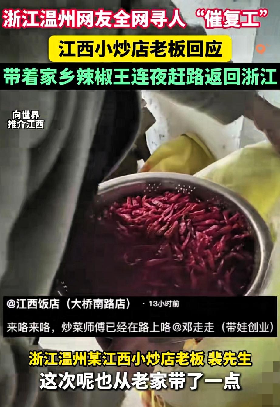 浙江这家江西小炒店也太绝了! 老板回江西过年,整条街的打工人直接集体“戒断反应”,组团催复工的架势,堪称年度名场面。 没有网红装修,就一个油腻小门脸,酱油瓶都包了浆。 猛火一窜,辣椒蒜末在油里爆开,那股子锅气能飘半条街,附近打工人一天不吃就浑身不得劲。 说好十五开门,结果老板迟迟不回,食客们建群追问,扒出手机号连环call,手机震得老板大腿发麻。网上催更帖还冲上本地热门,老板半夜果断订票,带着村里的好辣椒连夜返程。 其实大家疯抢的不是山珍海味,是烟火气里的踏实滋味,是老板十几年如一日的用心。 真正的好馆子,从不用营销造势,靠一口地道风味就能拴住食客的胃。 你心里有没有这样一家“戒不掉”的宝藏小店?它凭什么让你念念不忘?