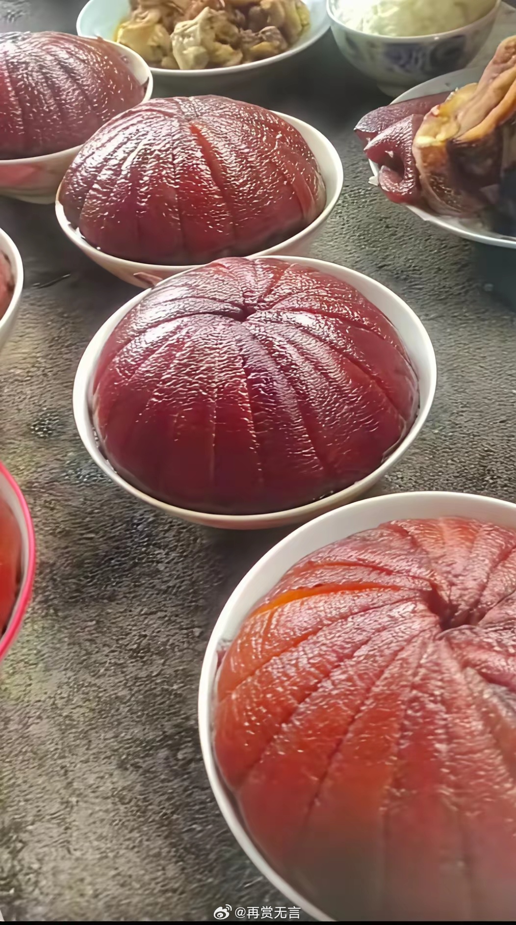 这是我见过最漂亮的扣肉,整齐得像是排过队,这手艺,太讲究了——光看着都舍不得动筷子。