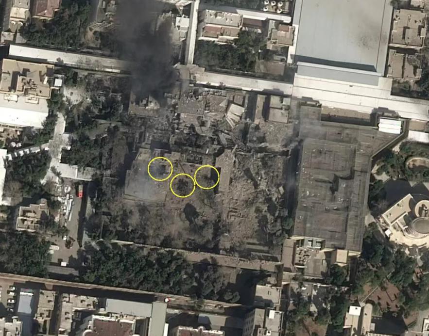 惊恐一幕,在完全被摧毁的哈梅内伊官邸残骸,发现地面出现三大巨大黑洞!哈梅内伊有可