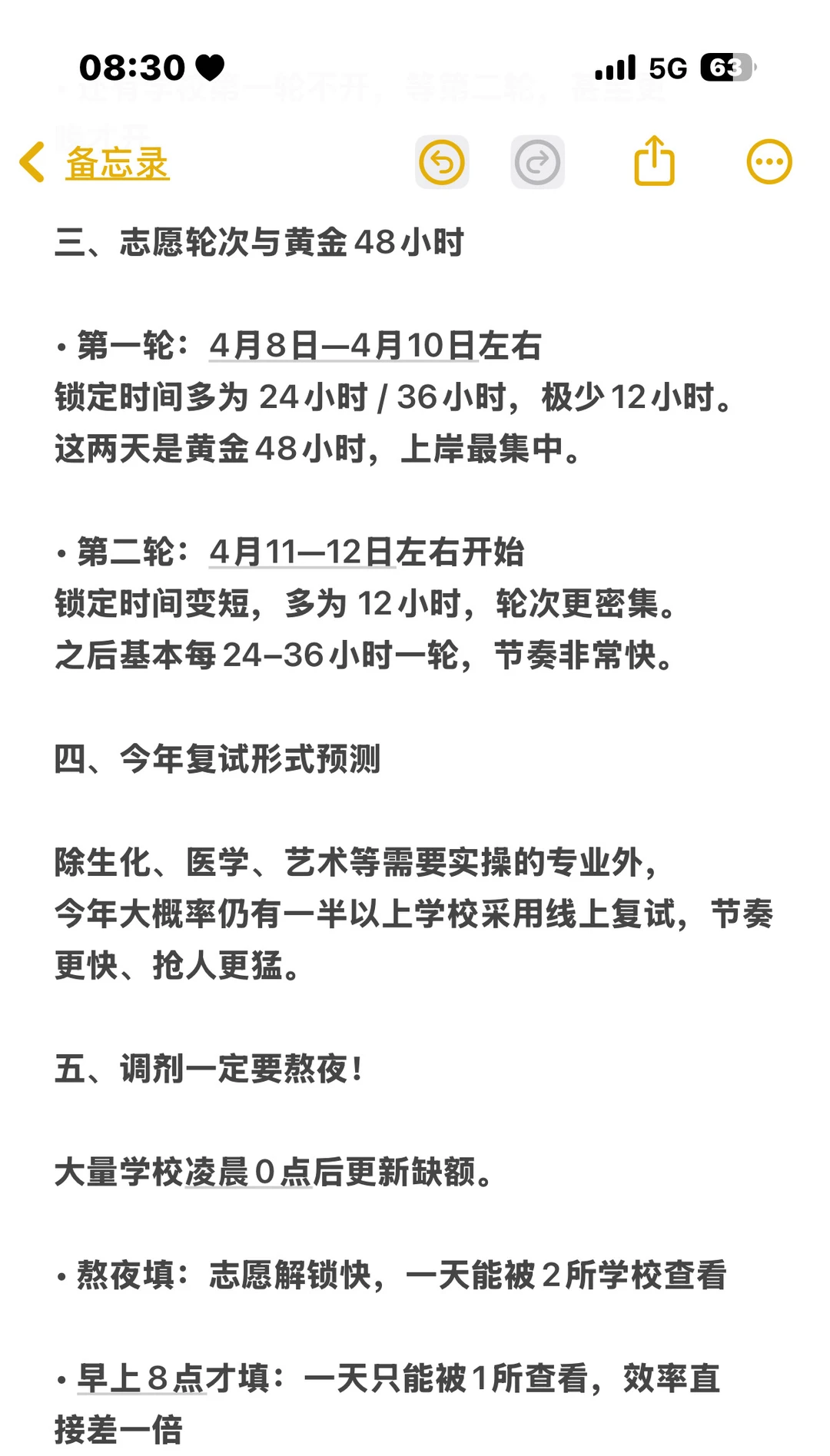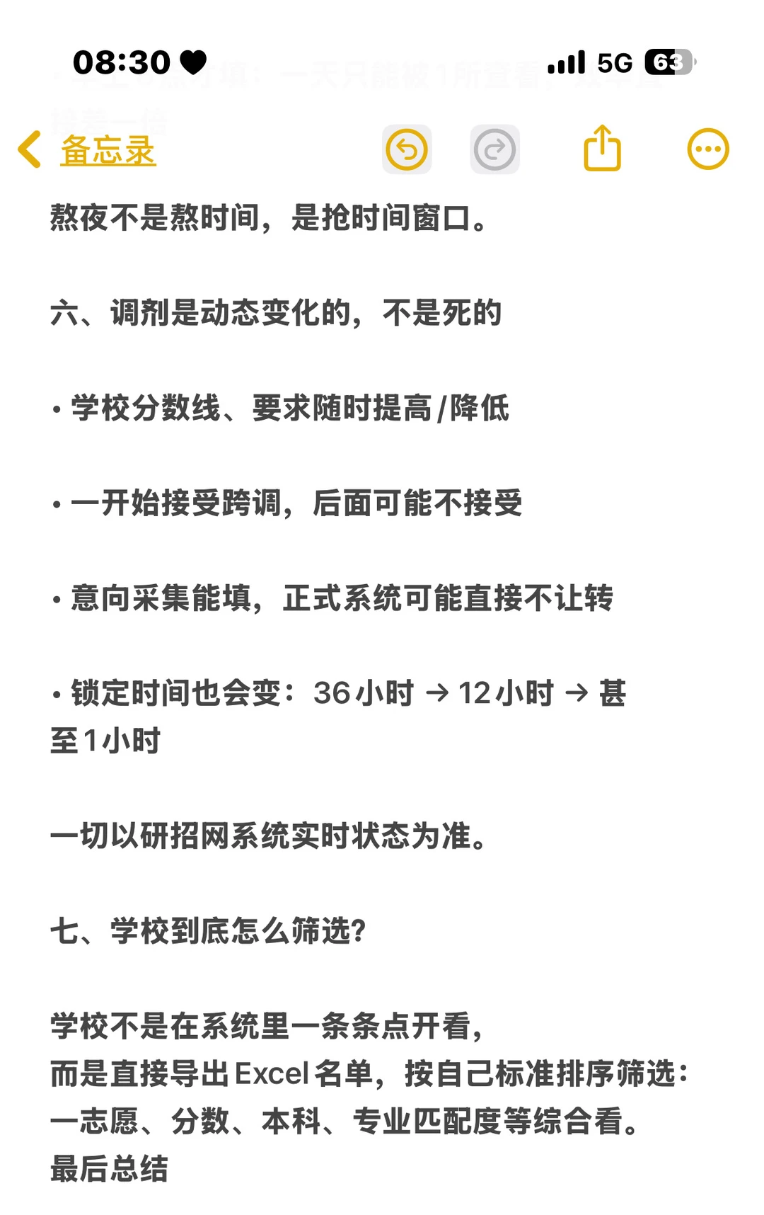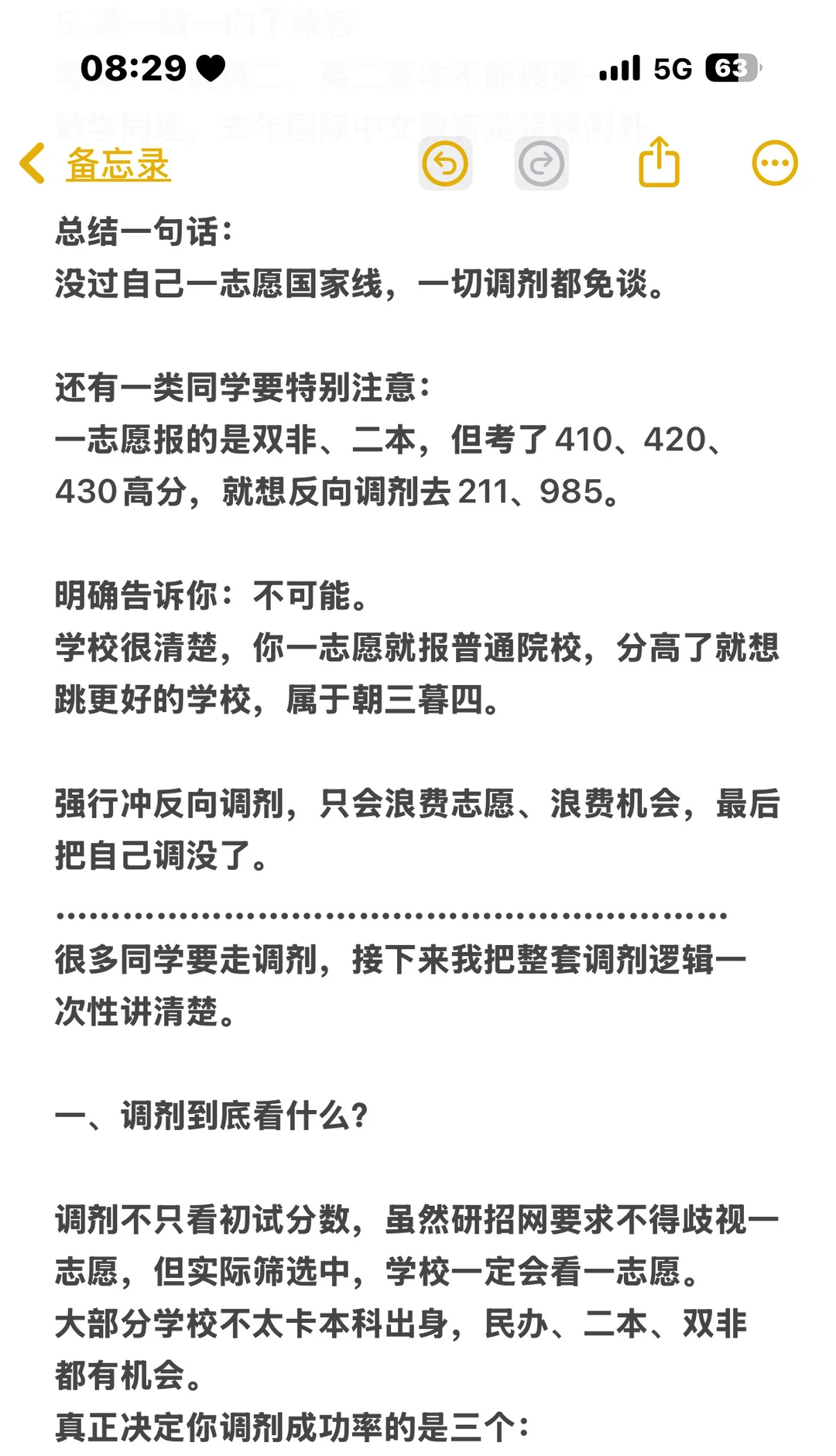 一、调剂到底看什么? 调剂不只看初试分数,虽然研招网要求不得歧视一志愿,但实际筛选中,学校一定会看一志愿。 大部分学校不太卡本科出身,民办、二本、双非都有机会。 1. 一志愿院校层次 2. 初试总分 3. 本科及科研表现(加分项) 一志愿越好,分数含金量越高。 • 一志愿985/211:可以从上往下调,覆盖大部分院校。 • 一志愿双非/普通院校:很难往211/985上调。 一志愿报考B区,但你总分+单科都过A区线,可以往A区调剂。 二、调剂时间线(非常关键) 从去年开始,学校不允许提前公开抢跑,但私下/官网提前放信息依然存在。 • 3月27日:意向采集系统开通 可填10个平行意向志愿,填完不能修改、不能删除,不要一开通就填满。 • 4月8日 0点:正式调剂系统开通 从10个意向里选3个转为正式志愿,也可重新填其他学校。 建议按冲—稳—保搭配。 调剂缺额不是4月8日一次性全出: • 3月27日—4月8日:陆续公布 • 4月8日当天:有的0点开,有的8点、10点、下午才开 • 还有学校第一轮不开,等第二轮,甚至更晚才开。 三、志愿轮次与黄金48小时 • 第一轮:4月8日—4月10日左右 锁定时间多为 24小时 / 36小时,极少12小时。 这两天是黄金48小时,上岸最集中。 • 第二轮:4月11—12日左右开始 锁定时间变短,多为 12小时,轮次更密集。 之后基本每24–36小时一轮,节奏非常快。 四、今年复试形式预测 除生化、医学、艺术等需要实操的专业外, 今年大概率仍有一半以上学校采用线上复试,节奏更快、抢人更猛。 五、调剂一定要熬夜! 大量学校凌晨0点后更新缺额。 • 熬夜填:志愿解锁快,一天能被2所学校查看 • 早上8点才填:一天只能被1所查看,效率直接差一倍 熬夜不是熬时间,是抢时间窗口。 六、调剂是动态变化的,不是死的 • 学校分数线、要求随时提高/降低 • 一开始接受跨调,后面可能不接受 • 意向采集能填,正式系统可能直接不让转 • 锁定时间也会变:36小时 → 12小时 → 甚至1小时 一切以研招网系统实时状态为准。