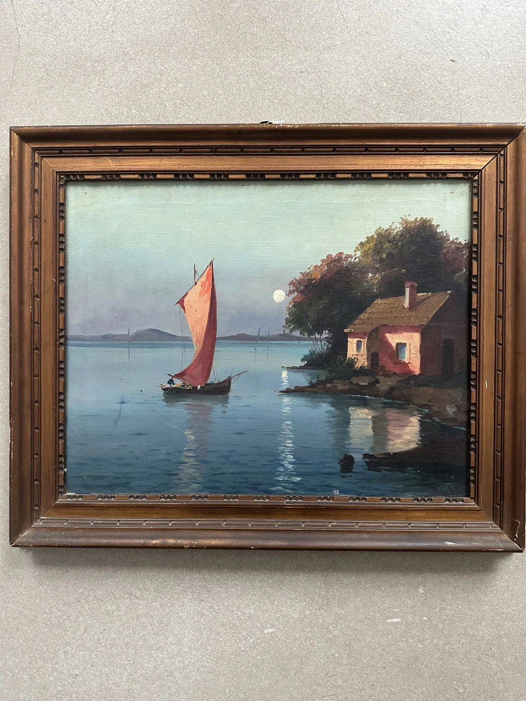 月落潮平 一帆归处是吾乡 画作尺寸框后约48/58