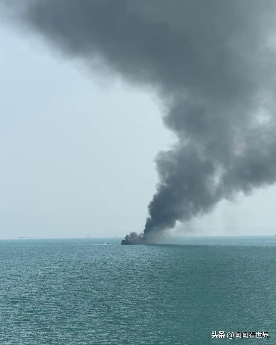 最新卫星图显示,3月3日伊朗发动袭击后,阿联酋富查伊拉石油工业区的两座油罐起火燃