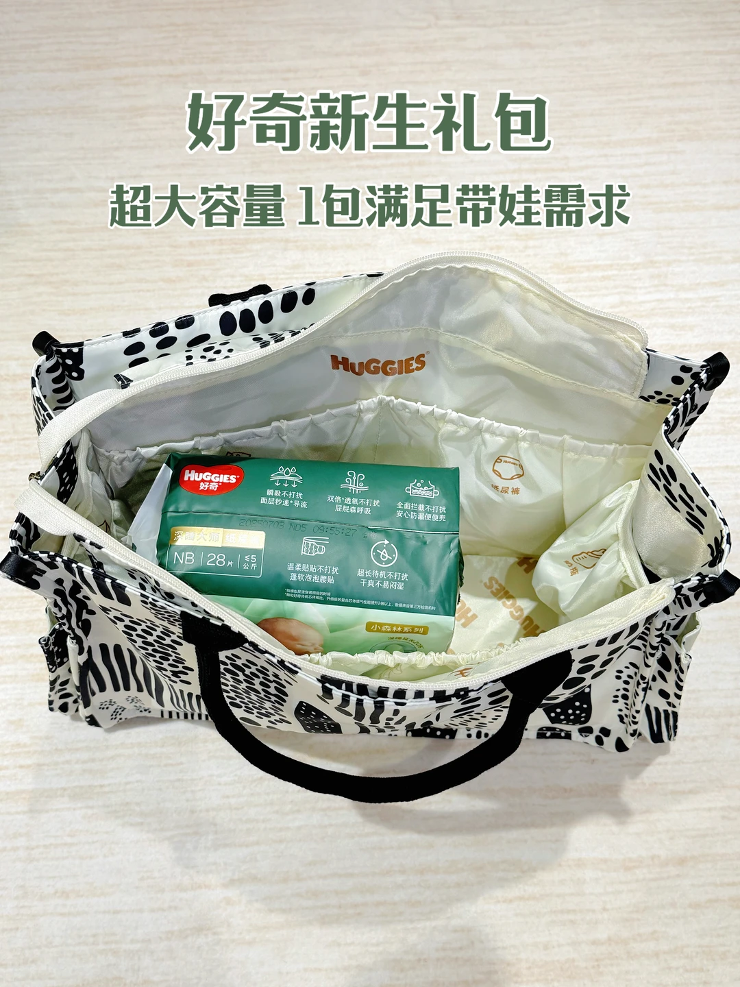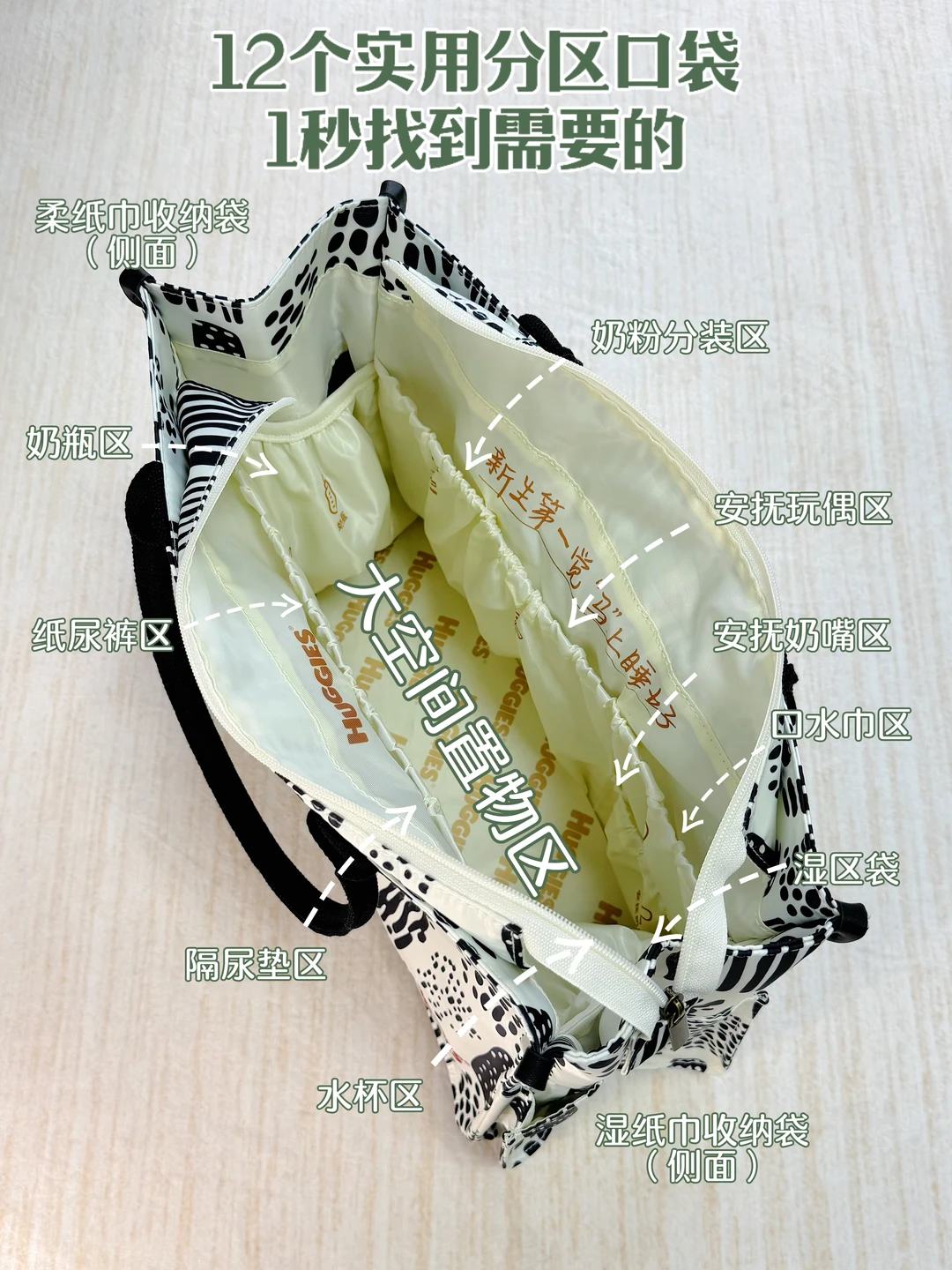 超大容量超能装,宝宝屁粮、奶瓶和宝妈用品都放得下,还有12个精细化分区,像个小管家把杂乱的待产用品收拾得井井有条,妥妥的备产好帮手