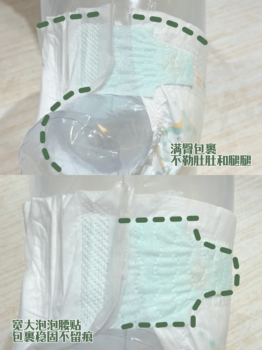 ✅满臀设计贴合新生儿身形,软乎乎不勒肚肚和大腿根,穿一天都无勒痕、红痕,安睡0打扰