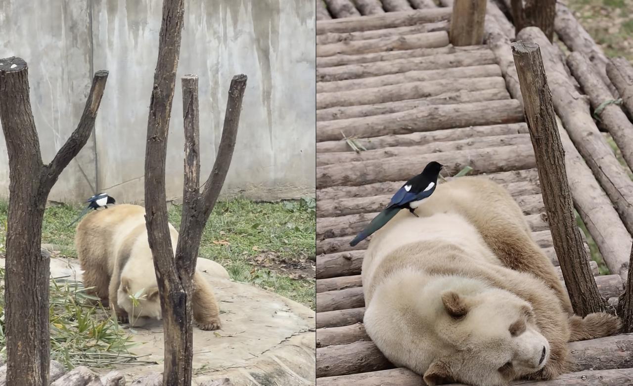 近日,位于陕西西安的秦岭四宝科学公园再现有趣一幕:国宝大熊猫“七仔”成了喜鹊眼中的“最佳建材供应商”。多段视频画面显示,一只喜鹊不仅自己频繁拔取“七仔”的毛用于筑巢,甚至还叫来同伴一起“进货”。面对喜鹊的“狂薅”,大熊猫“七仔”全程淡定,毫不反抗,相关视频登上热搜。众多网友被这有趣的一幕逗乐,也有网友在线“心疼”:“‘七仔’不会被喜鹊给薅秃了吧?” 上游新闻记者致电秦岭大熊猫研究中心,工作人员表示,喜鹊啄毛不会对“七仔”有任何影响。熊猫正常的毛难以被鸟啄下来,喜鹊能啄下的毛,大概率是即将脱落的或浮毛;另一方面,如果“七仔”不喜欢或感到不适,它会驱赶这些喜鹊。该工作人员还指出,“七仔”性格比较温顺,也喜欢与小鸟互动。喜鹊啄毛有利于它整理毛发,类似一种互利共生的关系。-app/#/content?catid=216&id=5224159(丸子)