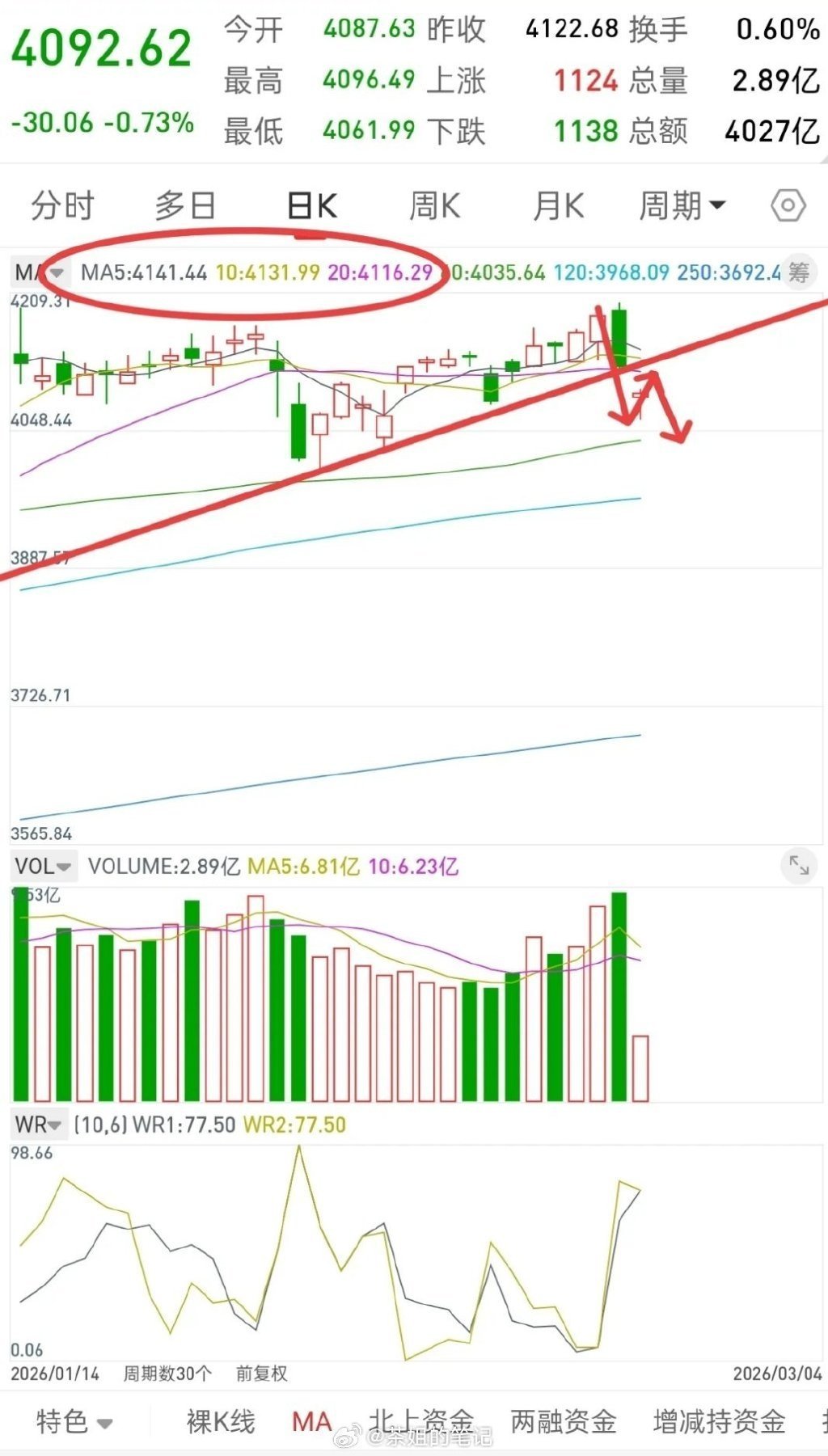 关于指数,目前上方压力5-10-20日均线,4116-4141左右,昨天这里是支撑,今天变压力。