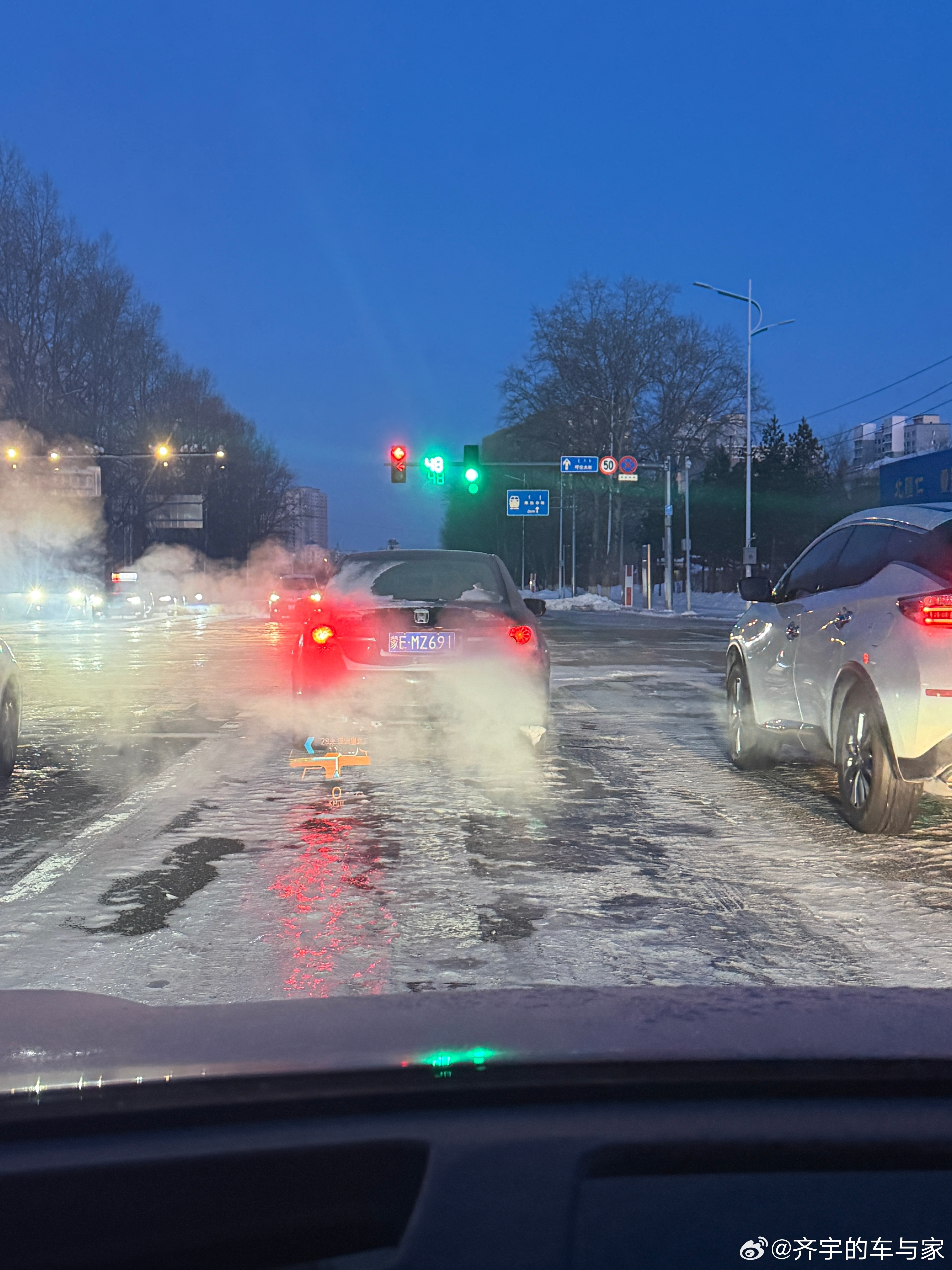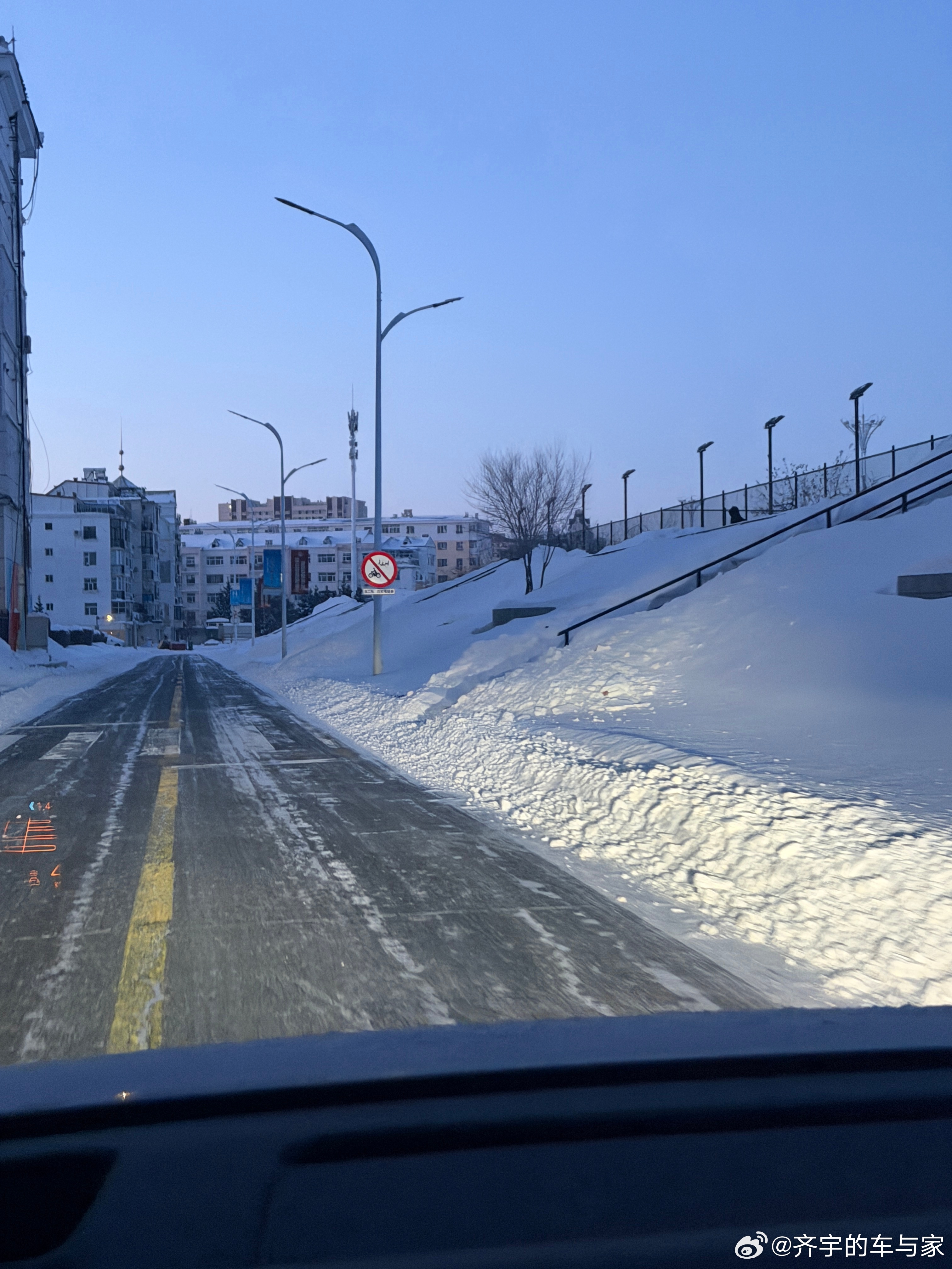 好大的雪啊,充满电也就跑180公里,早餐厅里的羊杂汤自己盛 呼伦贝尔