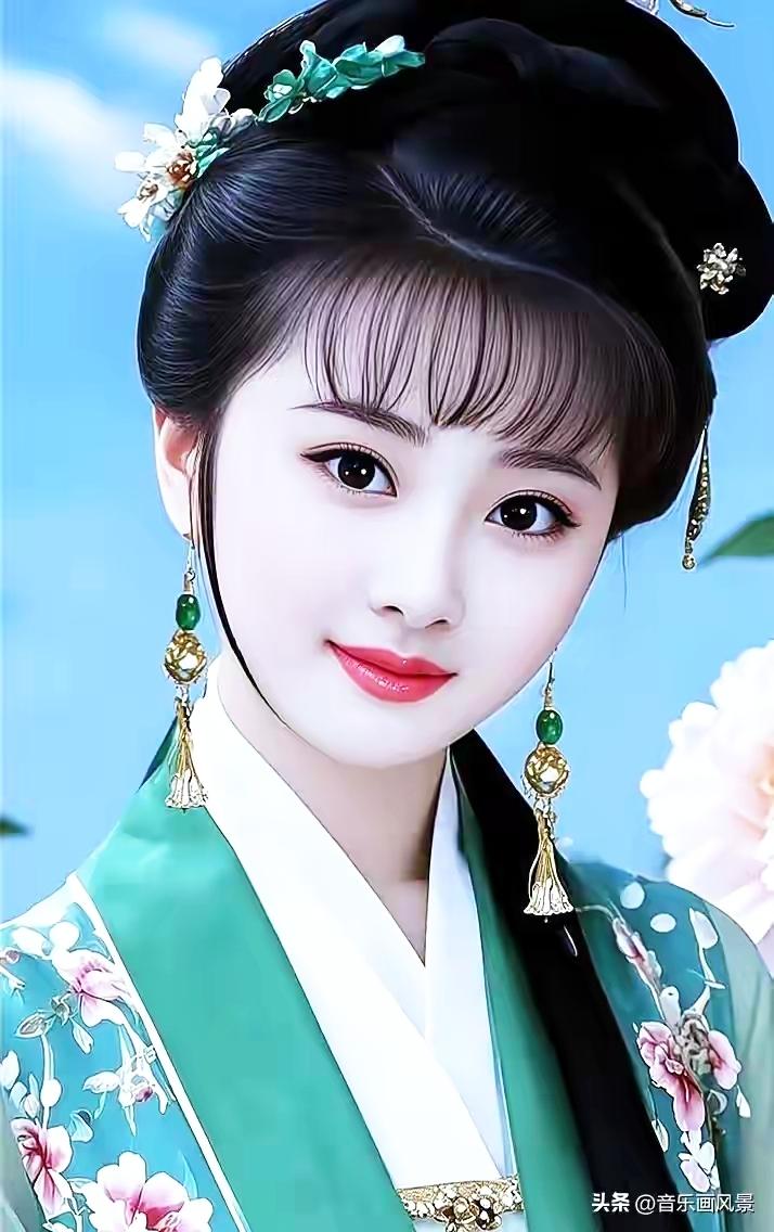 古装美人,温婉动人,花钿点缀,古典韵味十足。