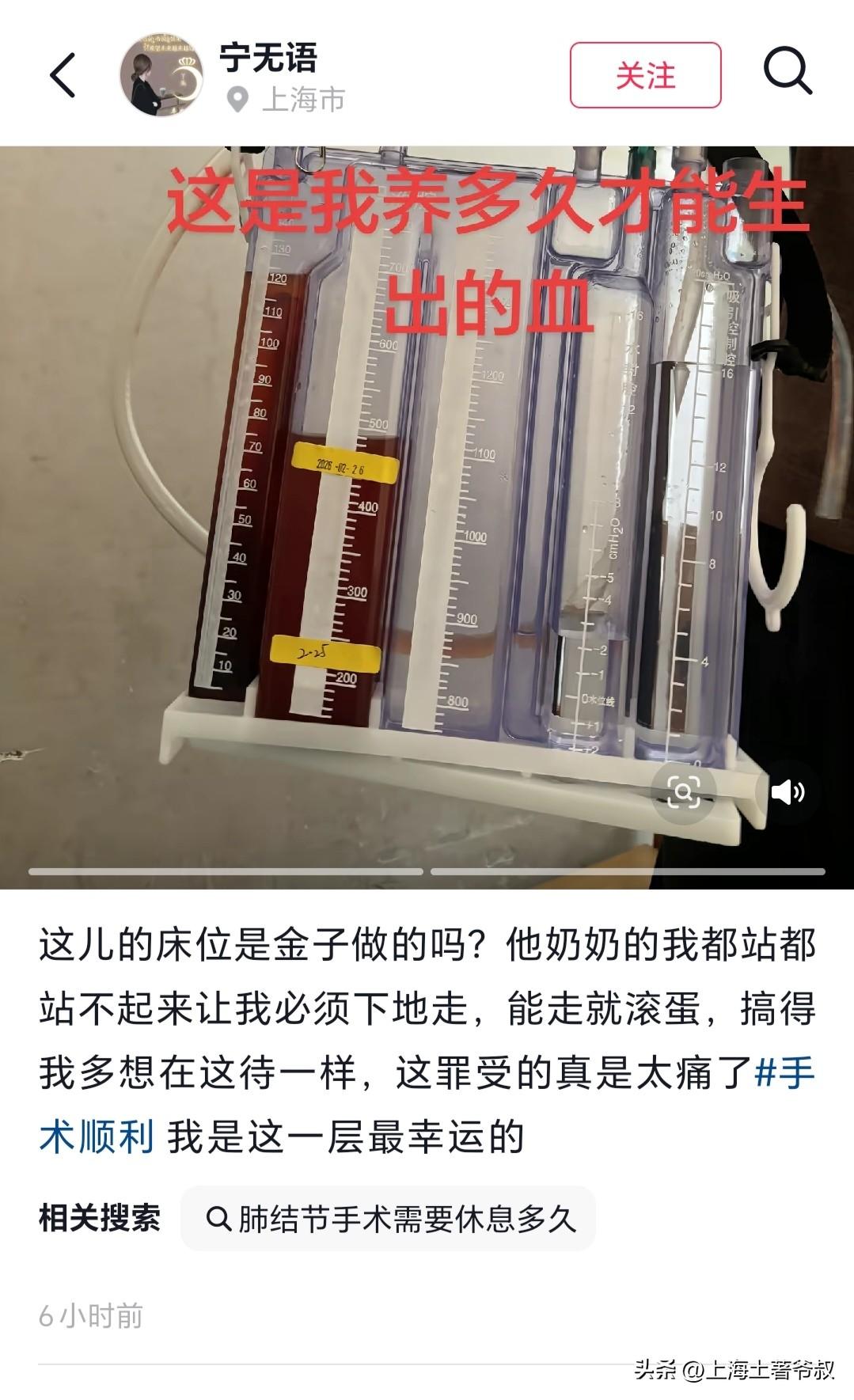 网上为啥有那么多外省人要去喷上海的医院?几天前有个安徽人发视频怼上海肿瘤医院,原因是她得肺癌来上海肿瘤医院做手术,手术做好后医生叫她多活动活动,结果这个安徽人发视频怼上海肿瘤医院,称自己疼的不得了还叫我下床走动,意思是我能走动了就叫我快点出院?难道上海肿瘤医院的床位都是金子做的?有网友建议安徽人以后生病做手术就在安徽省的医院里做,那样可以在医院里躺无数天都可以。那么各位网友们,你们说说她的吐槽是不是对的?