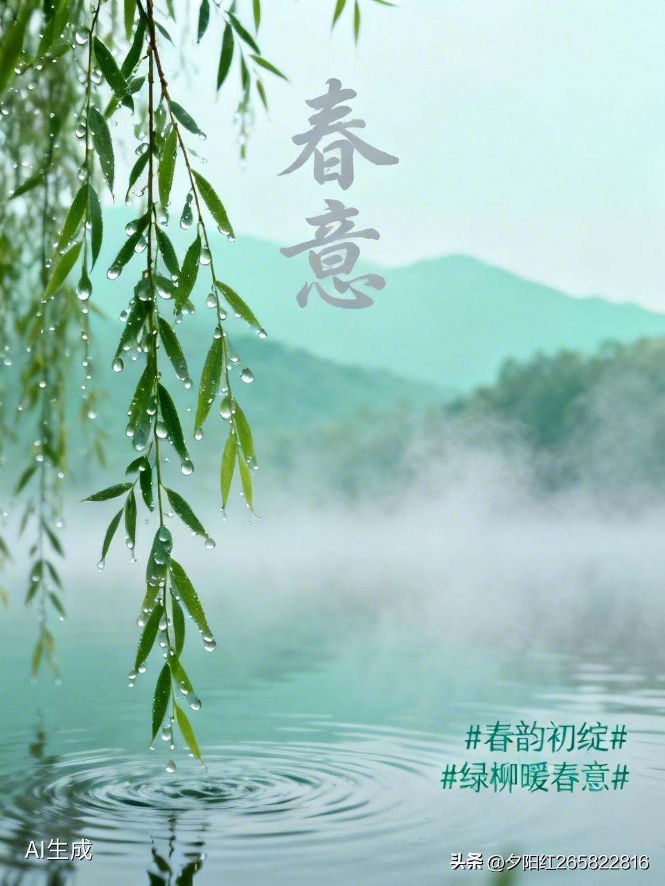 《春意》 春雷惊蛰万物舒, 诗田种下惊无句。 听莺婉转花争艳, 风舞轻柔柳绽新。 初春雨润干般绿, 隔夜风侬万点红。 青山有情百鸟呜, 绿水无意千帆过。 无可奈何花落去, 似曾相识燕归来。 春韵初绽 绿柳暖春意 绿柳露春声 春季诗