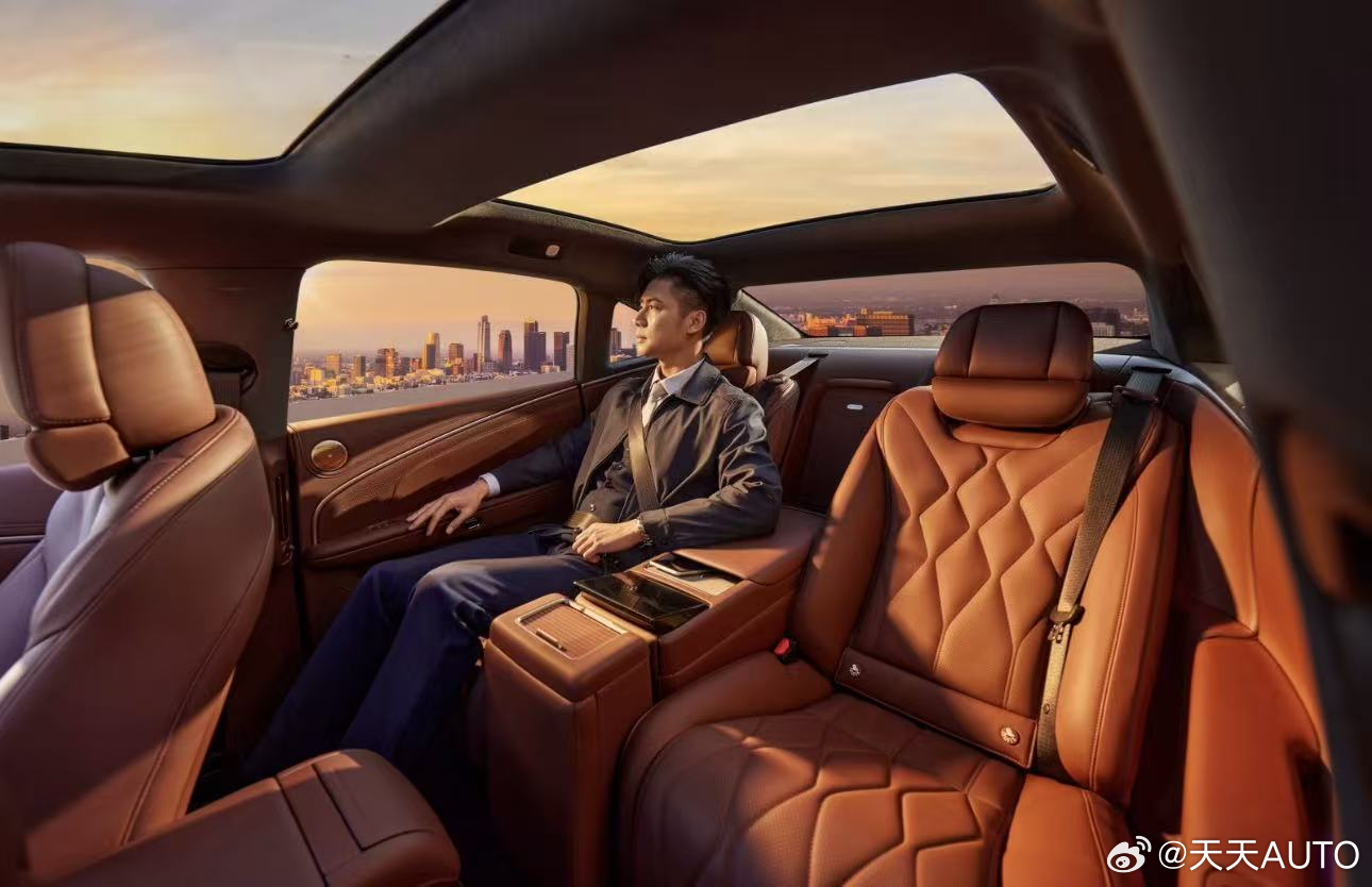 (昊铂A800五座模式)昊铂A800采用“前后双环抱”设计布局,兼顾驾驶乐趣与乘坐舒适。史上最长的6536毫米月晕氛围灯带,打造沉浸式空间体验。30年花曲柳木饰板搭配超柔Nappa真皮,融汇东方美学与现代科技。此外,2+1变形座椅(带智慧中岛)、零重力副驾、机械按摩座椅、三温多控智能冰箱、悬浮式双层遮阳帘、23扬声器旗舰音响等高端配置,覆盖商务、家庭多种场景,让豪华更具温度。