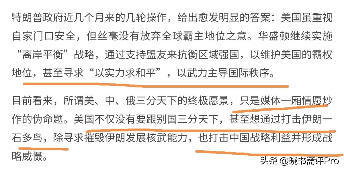 联合早报刊文表示,美国刀刀砍向中国这一点毫无疑问,美国目的本质上就是压缩中国战略空间,中国不得不应对。3月5日,联合早报刊文表示,美以联手空袭伊朗,搅动全球地缘战略格局,这直接打击中国战略利益。从活捉马杜罗、再到“斩首”哈梅内伊,特朗普在维护美国自身战略利益的同时,剪中国裙边的轮廓也越来越清晰。 而在经济战略上,在巴拿马,在整个拉美,美国都在消除北京影响力。对美国来说,一旦伊朗威胁消除,即可把主战场完全拉回亚太,投入更多资源压制中国。联合早报表示,美国根本无意于只当美洲的霸主,而是仍在积极压缩中国的战略空间,这仍旧是中国不得不面对的挑战。对于联合早报的这一论调,我们怎么看呢? 客观的说,联合早报的论调,说的确实是事实。特朗普政府的全球动作,对我们毫无疑问是系统性围堵、全方位挤压。看起来特朗普的行为不可理喻,不符合常理,但是这套看似疯狂的打法,明显是有章可循。中美贸易战硬刚之后,特朗普看起来没有在针对我们,但是从拉美拔掉马杜罗、在巴拿马运河强行接管中资,到中东直击伊朗这个关键支点,每一刀都砍在中国的能源通道、地缘支点、海外利益上。 正面硬刚中国,美国没有把握,成本太高、风险太大,因此现在美国是从外围“剪裙边”,也就是典型的“先去枝叶”的打法。毫无疑问,明面上现在中美关系进入稳定期,但是外围的博弈可以说非常的剧烈,美国似乎在不断的得手,这不得不引起我们的高度警惕。很显然,当下的伊朗局势,美国虽然在冒险,但是若得逞,对我们的影响也极大,我们一方面要苦练内功,一方面当然要有密切关注,并予以应对。