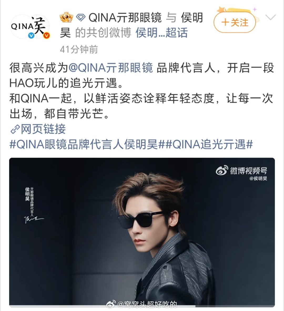 侯明昊QINA眼镜品牌代言人侯明昊正式官宣这就是爆剧生吧,商务一个接一个