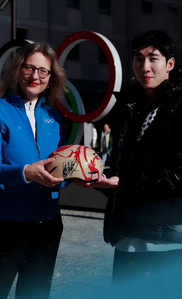 林孝埈将自己在短道速滑男子项目与混合接力中佩戴的头盔,签名捐赠给奥林匹克博物馆,定格赛场荣耀瞬间。