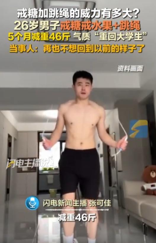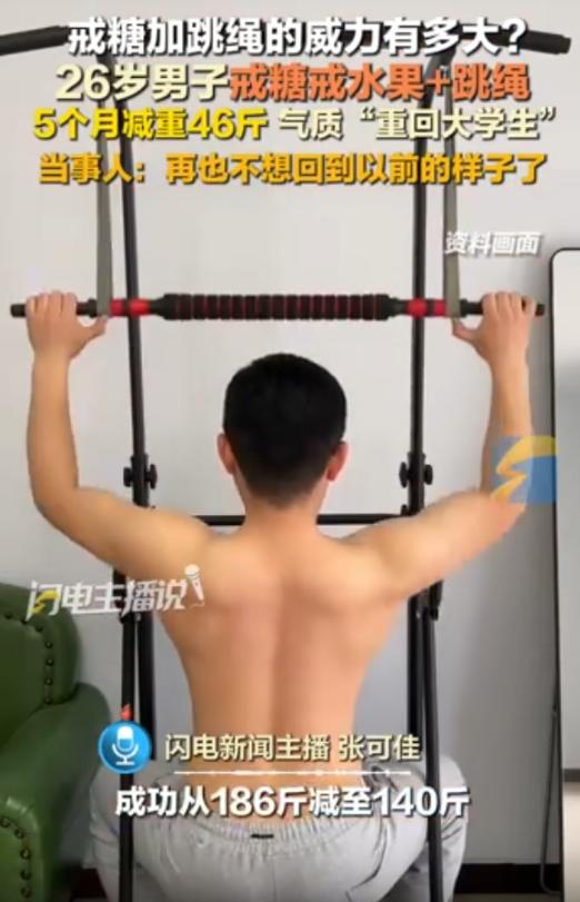 “太有毅力了!”山东临沂,一男子体重高达185斤,他为了改变自己,坚持戒糖戒水果,还每天进行跳绳和力量锻炼,在5个月后,男子成功减重46斤,气质身材一下变回大学生,男子坦言再也不想回到以前的样子!网友:活该他变帅! 五个月前还是185斤、浑身透着慵懒油腻的普通男生,五个月后居然蜕变成了清爽干净的大学生模样,连眼神里的精气神都完全不一样了。 他今年二十六岁,185斤的体重压在身上,整个人看起来圆滚滚的,哪怕穿最宽松的卫衣,也藏不住凸起的肚子和粗壮的胳膊腿。 他后来在视频里吐槽,那段时间的自己,简直是“摆烂界的天花板”。 那时候的他,对甜食和高糖水果几乎没有抵抗力,夏天冰可乐一天能喝两三瓶,奶茶只点全糖,还有那些高糖水果一次能炫一斤多。 而那时的他,从来没觉得有什么问题。 一天晚上,他翻出自己大学时的照片,那时候的他虽然不算瘦,但干净利落,眼神清亮,再看看镜子里臃肿邋遢的自己,终于下定决心:必须减肥,必须改变。 减肥的第一步,就是和甜食、高糖水果彻底说再见。 刚开始的日子里,每天下午三四点,馋虫就会准时找上门,看到同事点奶茶、吃水果,他只能假装低头忙工作,咽着口水强撑。 朋友聚会的时候,有人劝他“就吃一口,没人发现”,他笑着摇头:“我怕这一口,就把最近的努力全毁了。” 每次聚会,他都安安静静吃清水煮的蔬菜和瘦肉,别人喝啤酒、喝奶茶,他就喝白开水,久而久之,朋友们也都习惯了他的坚持,不仅不劝他,还会主动帮他点清淡的菜。 他没有急于求成,而是从最基础的开始:每天先做5分钟热身,活动开全身的关节,然后跳绳,每次跳30个就休息一分钟,一天下来也就跳100个。 晚上下班回家,哪怕已经八点多,也会在阳台跳一会儿绳,哪怕空间狭小,哪怕浑身是汗,也从来没有间断过。 慢慢的,他的体能越来越好了,便开始逐渐加重训练。 练完之后虽然肌肉酸痛,但那种成就感,是什么都替代不了的。 在5个月后,男子成功减重46斤,气质身材一下变回大学生,男子坦言再也不想回到以前的样子! 减重46斤后,他的体重降到了139斤,整个人的变化大到让人认不出来。 以前凸起的啤酒肚不见了,胳膊和腿变得纤细,脸上的赘肉也消失了,下颌线变得清晰起来,眼神也从以前的慵懒呆滞,变得明亮有活力。 这五个月的减肥之路,真的很苦很累,有过想放弃的念头,有过馋到崩溃的时候,但每次看到自己体重一点点下降,看到自己的变化,就觉得一切都值得。 他说,自己最庆幸的,就是没有半途而废,没有回到以前那种暴饮暴食、躺平摆烂的日子。 他把自己的减重经历分享到网上之后,很快就收获了大批网友的关注和点赞,评论区里全是满满的鼓励。 有网友留言:“太佩服这种毅力了,五个月减46斤,换做是我,早就放弃了,活该他变帅!” 甚至还有网友说:“看了他的经历,我也下定决心减肥了,希望自己也能像他一样坚持下来!” (信息来源:《戒糖加跳绳的威力有多大?26岁男子戒糖戒水果+跳绳 5个月减重46斤 气质“重回大学生”》闪电新闻)