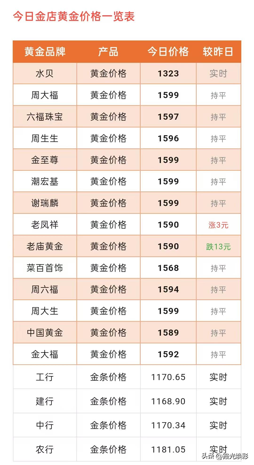 金饰克价!以及金价走势行情分析! 今天(2026年3月5日)星期四,农历正月十七,中午13时15分。 那么来看看,今天各大品牌黄金门店金饰品报价为多少钱一克了? 周大福黄金价格1599元/克,六福珠宝黄金价格1597元/克,周生生黄金价格1596元/克,老凤祥黄金价格1590元/克,老庙黄金黄金价格1590元,菜百首饰黄金价格1568元/克。 同昨天(3月4日)各大品牌黄金门店金饰品报价相比较,今天有一个品牌黄金门店金饰品价格上涨了,上涨的是老凤祥黄金,上涨了3元/克。 另外,还有一个品牌黄金门店金饰品价格则下跌了,下跌时是老庙黄金,下跌了13元/克。 其它,周大福、六福珠宝、金至尊、潮宏基、谢瑞麟、周六福、周大生、金大福、周生生、中国黄金、菜百首饰各分别同昨天报价保持一致。 据黄金价格网消息: 黄金价格昨日迎来反弹,现货黄金稳定在5140美元/盎司附近,日内涨幅接近1%,收复周二部分失地,由于美伊冲突的持续升级引发的全球避险需求激增,同时美元阶段性走软为金价提供支撑。 2026年3月5日,黄金白银震荡走高,分析指出:目前黄金在5100-5200美元/盎司区间维持偏强震荡,若地缘紧张局势无明显缓和,黄金进一步上涨的可能性较大。 截至11时40分黄金实时行情:伦敦现货黄金报每盎司5188美元,美黄金报每盎司5198美元,伦敦现货白银报每盎司85.1美元,美白银报每盎司85.3美元。国内实时金价1152元/克,白银实时价格21.5元/克,铂金实时价格500元/克。 金价走势分析: 金价昨日先下探5085附近后企稳回升,欧盘延续反弹,晚间站稳5180上方,呈现深V反转,绝地反击的修复走势,多空博弈进入白热化,市场情绪从恐慌转向谨慎。 金价目前在小时级别走势上价格在5200一带承压之后逐步回落,在连续的窄幅震荡之后技术形态开始逐步走弱,短周期均线开始逐步勾头向下发散,K线慢慢承压短周期均线维持震荡偏弱一些走势,倾向于在尾盘可能还有一些调整空间。 但是以目前4小时级别走势上来看价格在上个交易日一波大跌后已经开始逐步企稳,在短期走势上延续大跌的可能性不大,尾盘可能维持个5180-5100的区间震荡修复走势了。 关注下短线的调整修复情况,短线操作上可以在5200短空和5100做多,具体进场点位我会实盘给出。 买黄金一定要记住这“4不买!”买黄金避坑指南 不吃亏! 一、买足金,认准“足金999”“Au999”“G999”字样! 像18K金(Au750)含金量只有75%,沙金、彩金更只是“表面镀金”,回收时根本不值钱。 二、不买“一口价”这是最大的坑!很多柜姐会强力推荐“一口价”黄金,造型精美但故意不标克重。 三、不买“镶宝戴珠”款镶嵌珍珠、宝石、翡翠的黄金首饰,颜值高但坑更多! 四、不买“空心/镂空”款,预算足够尽量买实心!空心镯、镂空戒指虽然显大,但太容易压瘪、变形,一旦损坏很难修复。 金饰品保养小常识: 一、防 止 拉 扯 :黄金的质地柔软,如果用力拉扯,会导致黄金首饰出现变形,会大大降低首饰的美观性。其次,如果是调试的黄金饰品,不要胡乱调试,顺其自然即可。 二、防 止 腐 蚀 :黄金能跟很多化学物质发生化学反应,常见的有香水,漂白水等,所以我们在使用过程中,一定要避免接触此类物质。建议,如在化妆时,先将妆画完再去戴好首饰并避免与此类液体接触。 三、首 饰 保 存 :如果黄金首饰长期不用,则需要放在干燥的地方保存,建议用布包好放在盒子里,与其它金属分开放置,避免磕碰,降低黄金的磨损。 四、日 常 佩 戴 :黄金在日常佩戴时需注意场合,比如,在游泳时佩戴,游泳池里面的水基本都是自来水,里面包含大量的氨元素,会导致黄金失去光泽。 重要声明: 本文所有内容,仅供读者参考,不构成任何投资建议,投资有风险,决策请谨慎。 黄金金店价格 足金金饰价格 金饰价 金首饰价格 金饰克价 金饰行情 黄金预购价黄金参考 金价回收行情 黄金金店价格 足金金饰价格 金饰价 金首饰价格 金饰克价