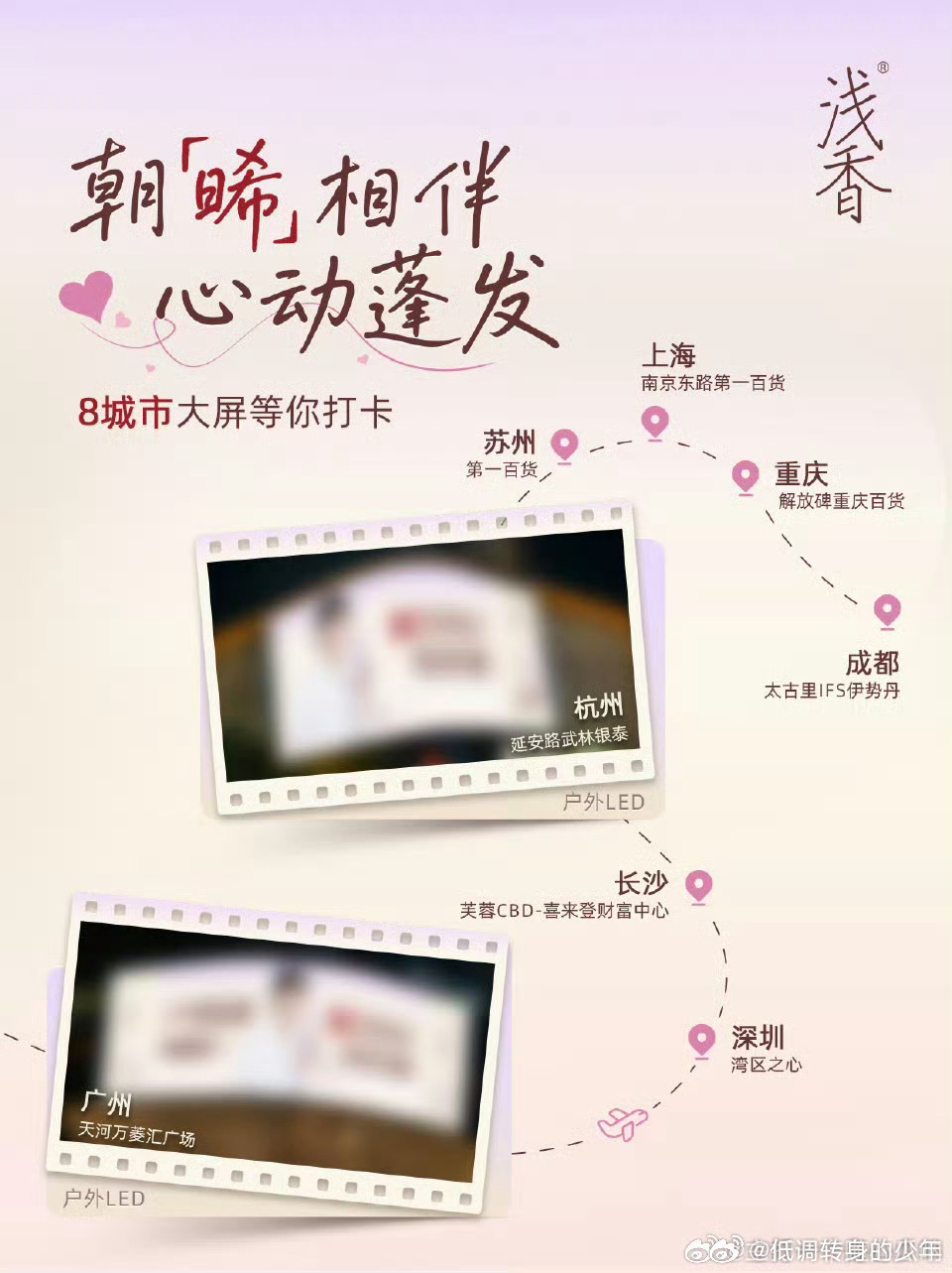 曾舜晞曾舜晞浅香品牌代言人官宣倒计时,8城地标大屏来了!八城都有,代言人曾舜晞 排面满满