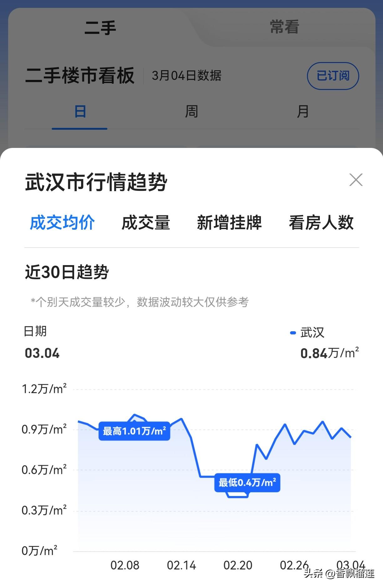 下图为武汉市二手房最近的成交量和成交均价: 按往年的成交记录来看,年后是淡季,该买房的年前都买了,但今年格外不同,从成交量看,是一天比一天高,看来市场慢慢复苏了…… 但去看成交均价,很明显越来越低,从曲线图上看,年后明显低于年前,这种价跌量涨说明什么?是房东都在割肉快跑还是市场正在转好? 各位有什么看法?