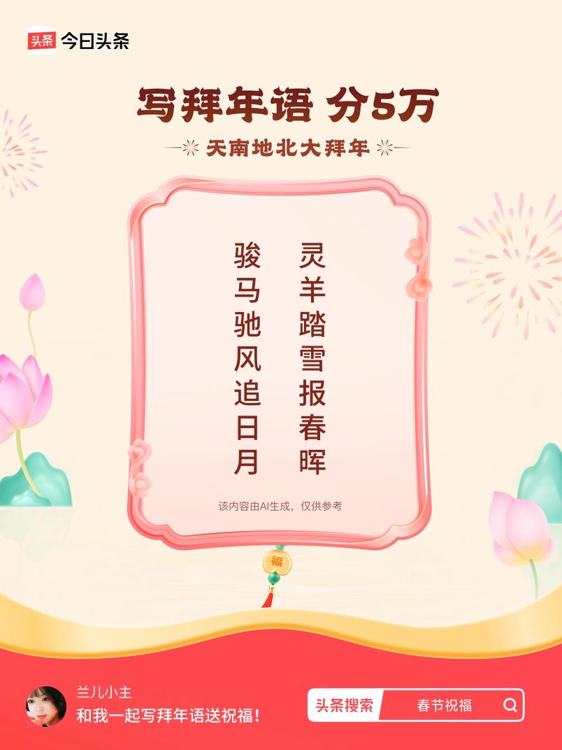 写拜年语送祝福新春拜年送祝福!我的祝福是:“骏马驰风追日月,灵羊踏雪报春晖”!快来一起写祝福吧戳这里,一起领红包>