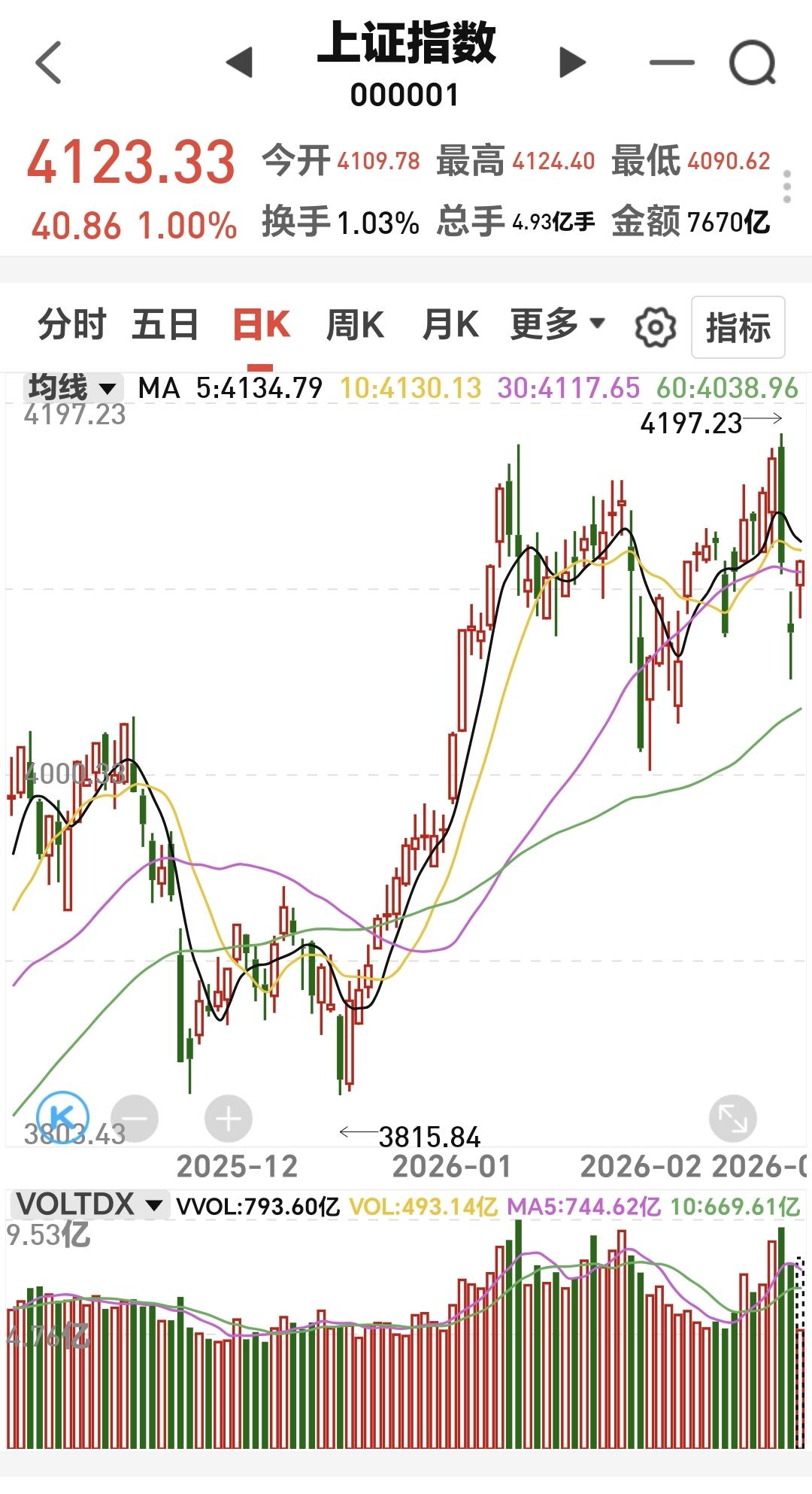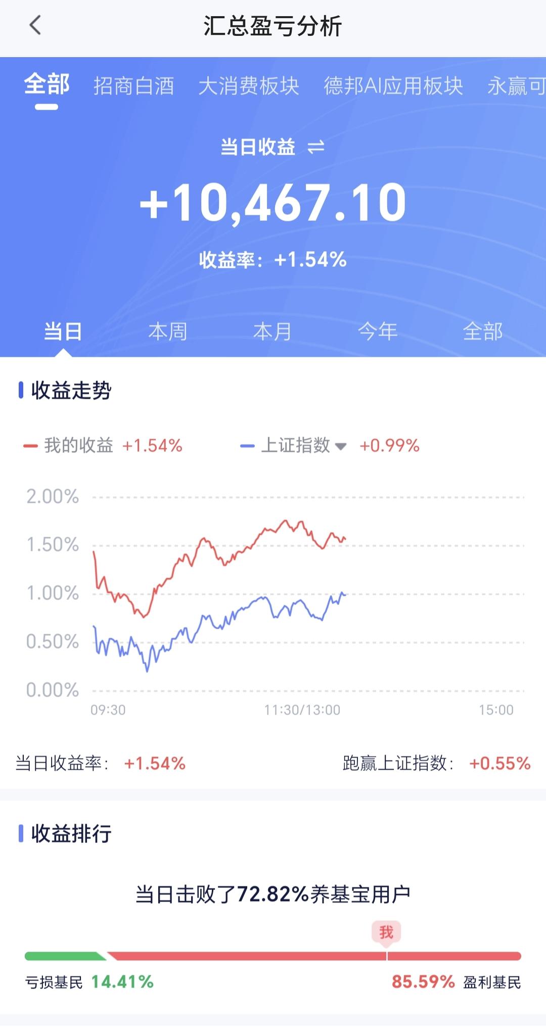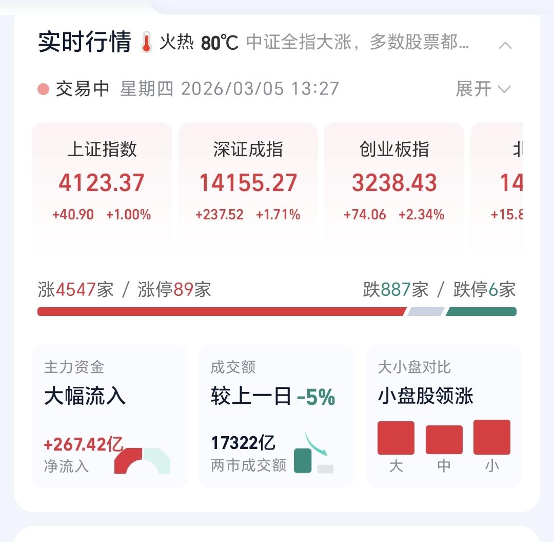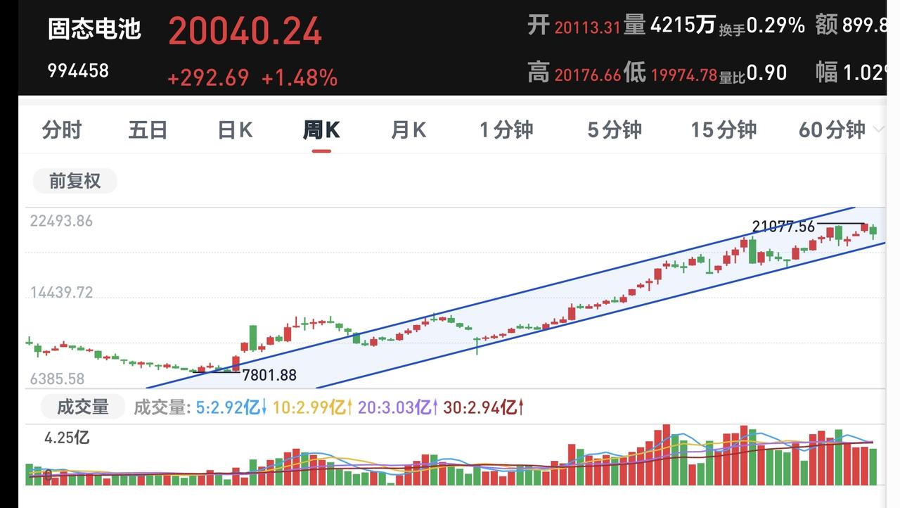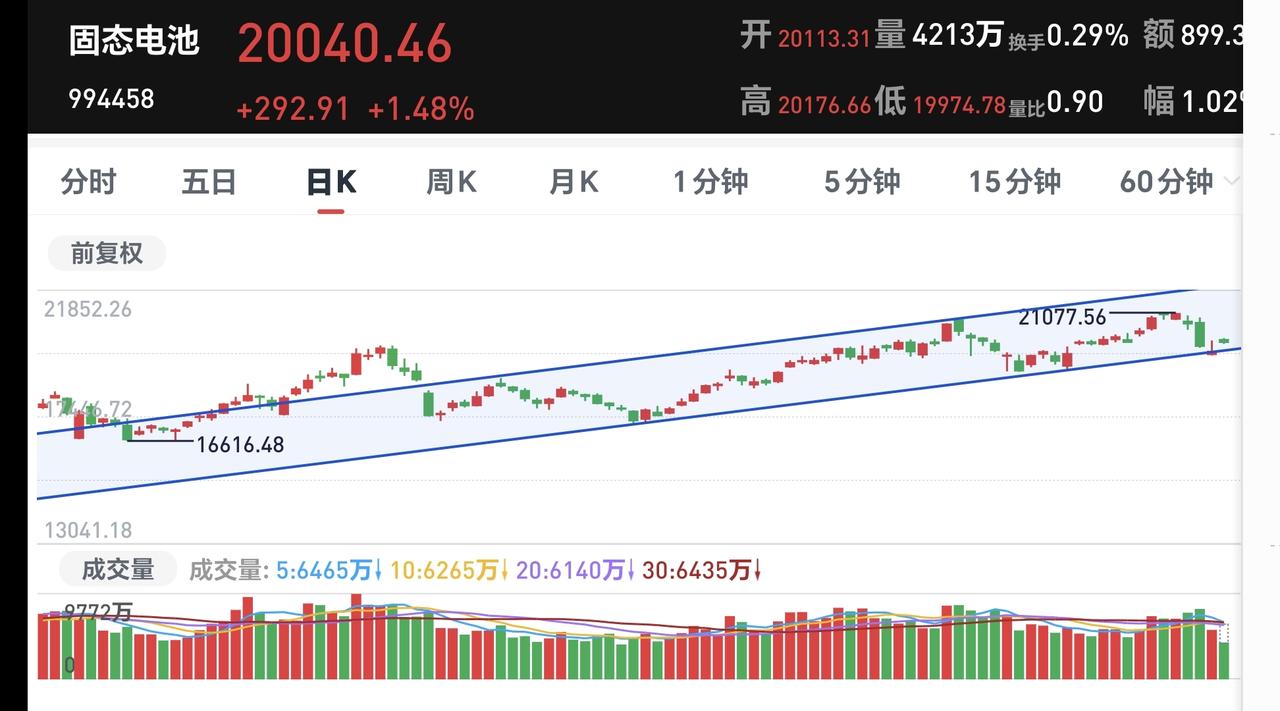 基金:牛市还在,现在的调整是为了将来更好的上涨 下午开盘以后高位横盘震荡,震荡的幅度非常小,创业板指上涨了2.40%,盘中点位3240点,上证指数上涨了1.02%,盘中点位4142点。 整个股票市场,上涨4547家,下跌887家,涨停89家,跌停6家,上涨家数多于下跌家数。 持有的基金中,盘中估值盈利金额最大的三个板块是:创新药板块,芯片半导体板块,创业板指,估值亏损金额最大的三个板块是:海外互联网板块,大消费板块,军工板块,估值整体上涨了10467元。 整个基金市场,上涨14939家,下跌2086家,上涨幅度超过5%的3家,下跌幅度超过5%的2家。 图10是今天板块的上涨排行榜,上涨幅度最大的三个板块是:电网设备板块,双创50板块,可控核聚变板块,图11是今天板块的下跌排行榜,下跌幅度最大的三个板块是:黄金板块,农林牧渔板块,交通运输板块,图12是今天基金的加仓和减仓人数,加仓7333573人,减仓3339830人,加仓人数超过了减仓人数。 整个市场主力资金净流入最多的三个板块是:高端制造板块,大科技板块,电子板块,主力资金净流出最多的三个板块是:军工板块,有色金属板块,农林牧渔板块。 1:今天黄色线在蓝色线上方,两条线之间的敞口比较大,下午继续横盘震荡的可能性很大,大幅度跳水的概率很小。 2:两市累计成交17322亿,相比于昨天同期缩量了5%,指数是大幅度上涨,但没有成交量配合,成交量与上涨幅度不相匹配,这样的情况下,不支持下午会继续大涨,上涨的持续性也有待观察。 3:现在五天线位置是4134点,盘中点位4123点,是在五天线之下的震荡,继续观察能不能站上和站稳五天线,最理想的情况是收盘的时候收在五天线之上。 4:固态电池板块处于日线级别上涨通道中,昨天盘中下跌跌破了上涨通道的下轨线,但收盘的时候又收到了下轨线之上。今天继续在上涨通道内震荡,只要能够保持在上涨通道内,短线持有的人就可以继续持有。如果跌破上涨通道的下轨线,短线持有的人需要注意风险。 固态电池板块周线级别也处于上涨通道内,本周的下跌并没有跌破周线级别上涨通道的下轨线,长线持有的人可以继续持有,周线级别上涨通道的下轨线是长线持有者的持有条件,只有跌破了周线级别上涨通道的下轨线,长线持有的人才可以考虑要不要止盈出来观望。 5:半导体材料设备板块,星期二下跌跌破了日线级别上涨趋势线,昨天和今天是在上涨趋势线下方震荡,并没有能够重新回到上涨趋势线上方,没有能够重新回归上涨趋势,短线持有的人需要注意风险,今天的上涨只是一个弱反弹。 半导体材料设备板块周线级别处于上涨通道中,本周的下跌并没有破位上涨通道的下轨线,长线持有的人可以继续持有,除非跌破上涨通道的下轨线,长线的人才可以考虑要不要止盈出来观望。 6:AI应用板块日线级别处于短期下跌通道中,今天的上涨并没有能够突破这个短期下跌通道的上轨线,并没有能够改变日线级别短期下跌趋势,想进场的人需要耐心等待上涨突破下跌通道上轨线的时候,才可以考虑要不要进场。 AI应用板块周线级别处于上涨通道中,但距离上涨通道的下轨线比较近,近期观察会不会跌破周线级别上涨通道的下轨线,如果有效破位这个下轨线,长线持有的人也需要注意风险。 今天的上涨到现在为止的判断是弱反弹,这样的反弹切忌追涨进场,今天的反弹不能表明市场已经止跌企稳,市场还处于震荡调整过程当中,这个调整不是三五天就可以结束的,现在还处于震荡调整的初期,但牛市还在,现在的调整是为了将来更好的上涨,今天究竟应该怎么办?我会在评论区留言。 花1秒钟点赞,花30秒钟评论,就是对我最大的支持,谢谢大家的支持。