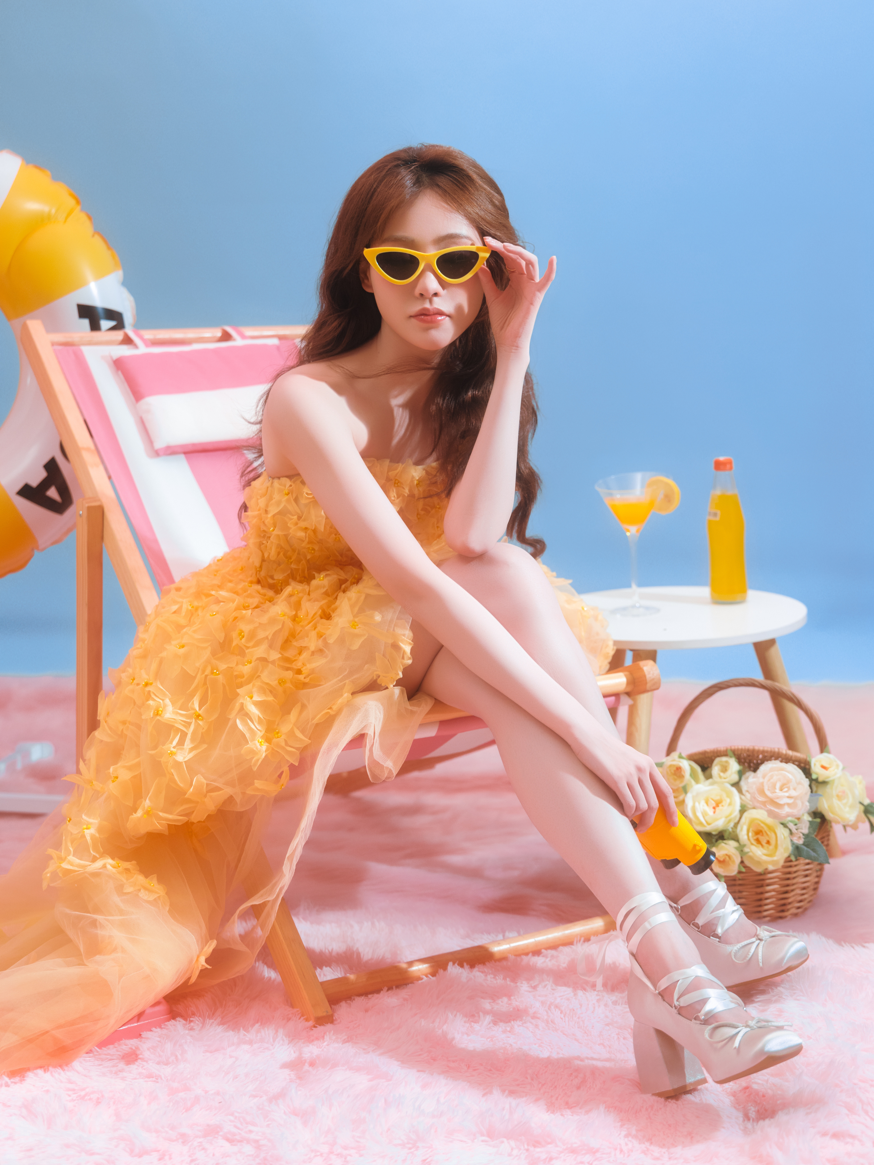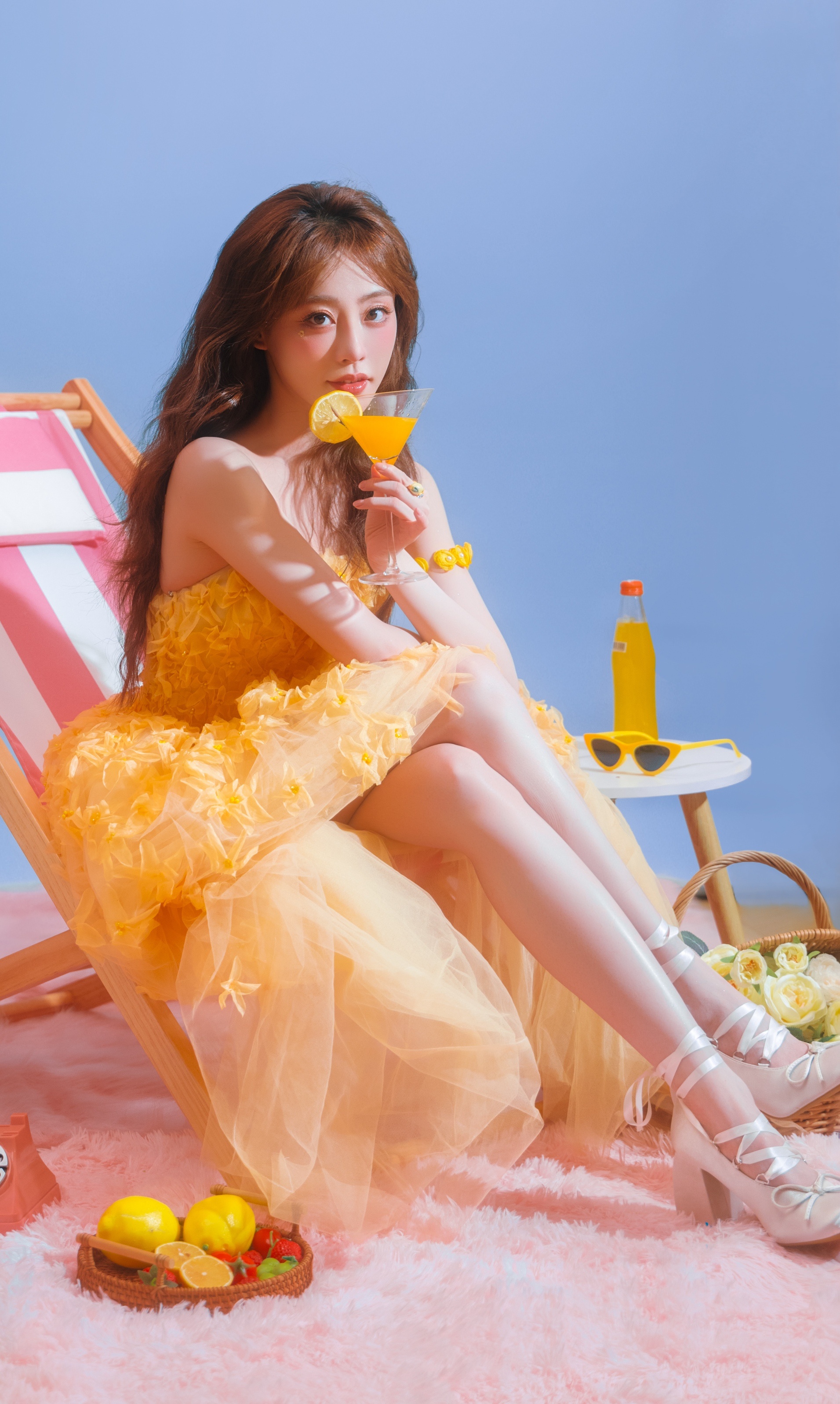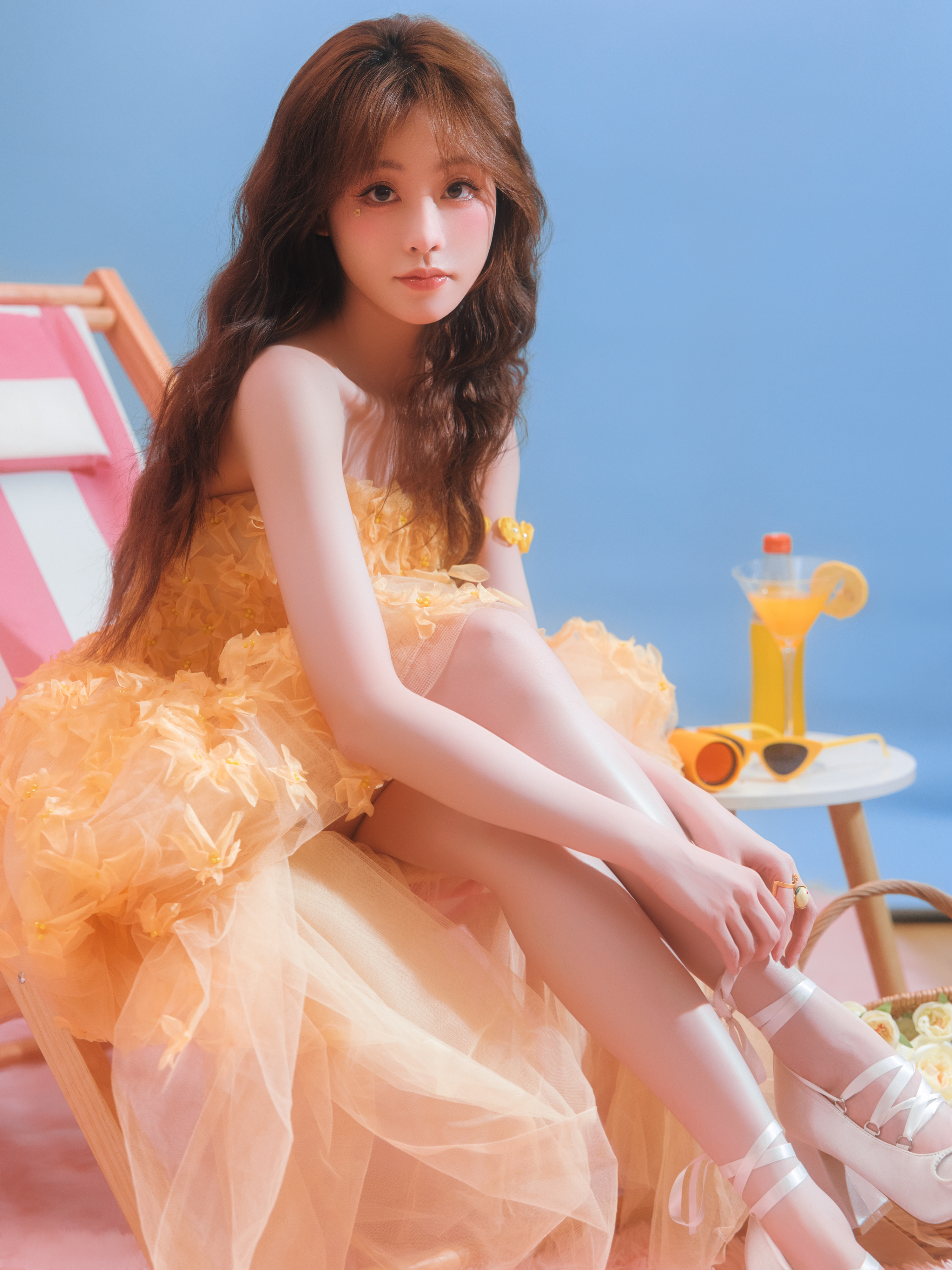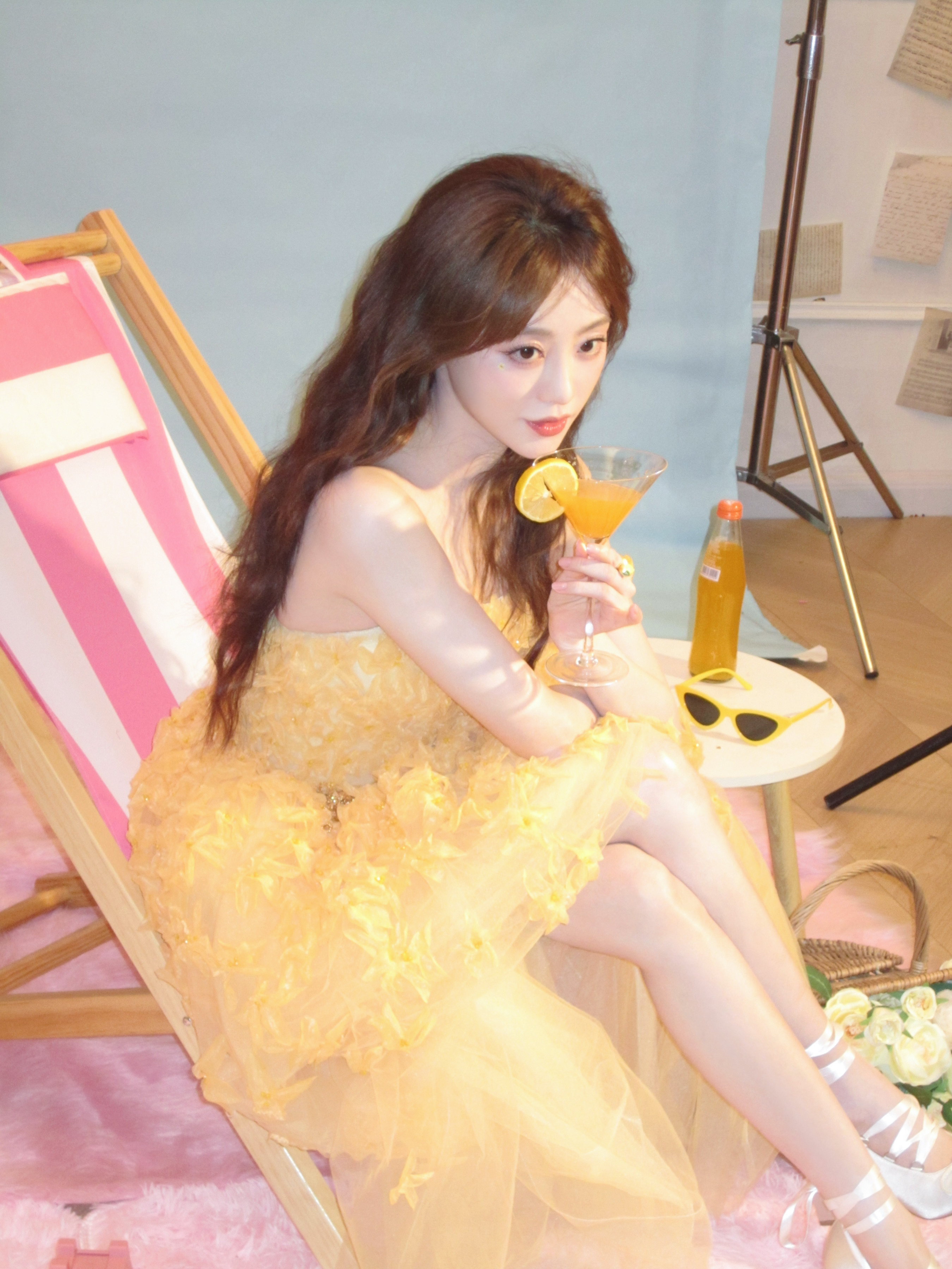 周冬雨祝绪丹你俩说啥呢祝绪丹祝祝黄色透视蓬蓬裙大长腿配绑带高跟鞋