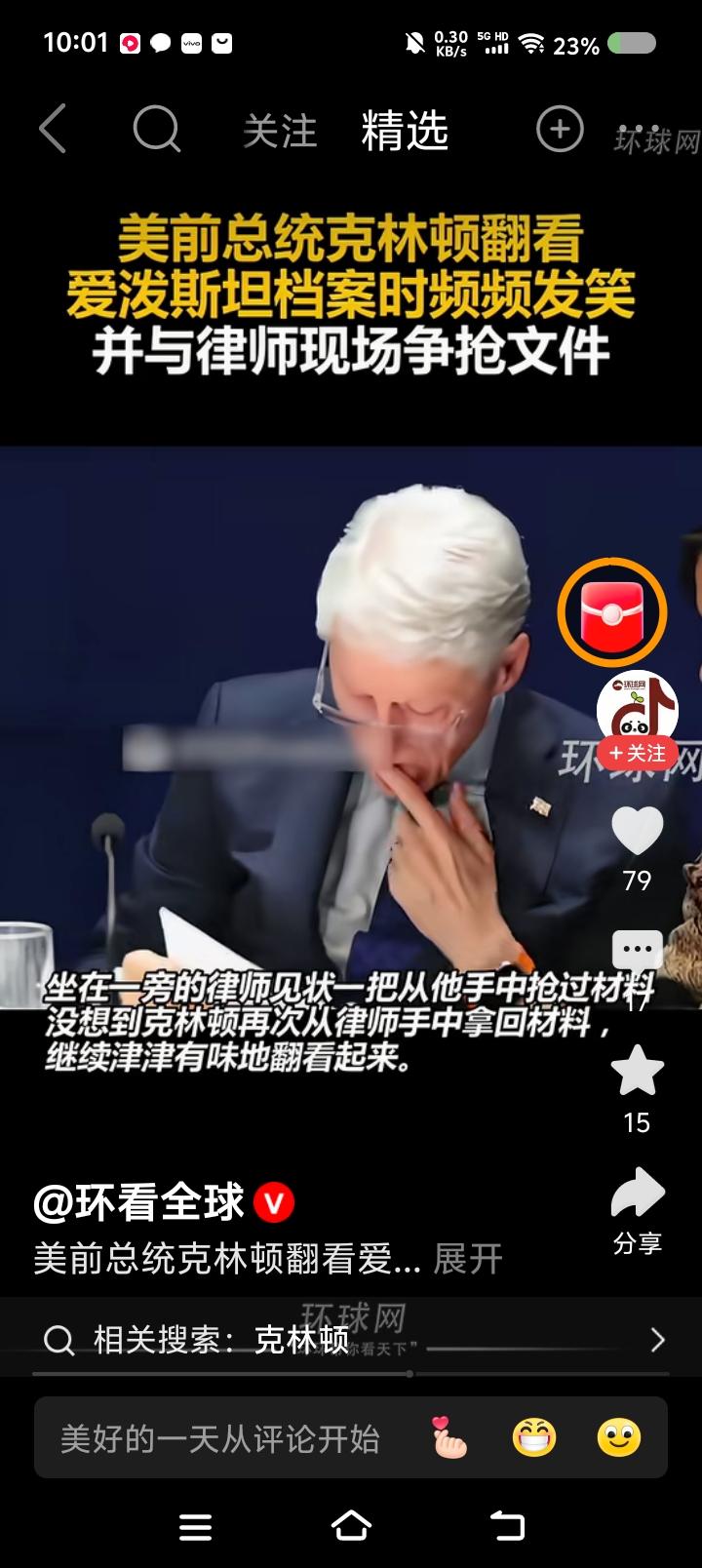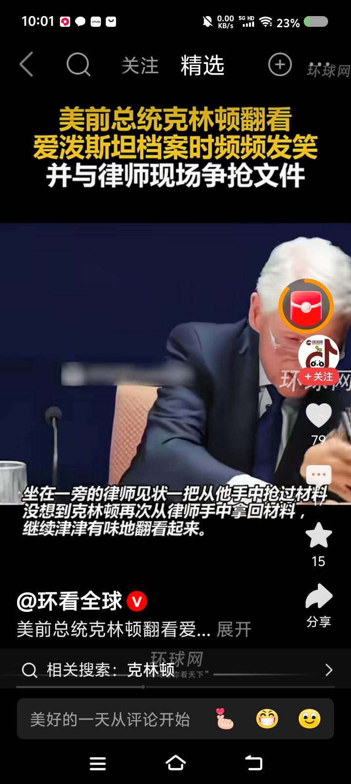 爱泼斯坦案听证会上,克林顿的笑声—— 网上视频:爱泼斯坦案听证会上,克林顿与律师争抢某份文件,成功后津津有味地读起来,笑容满面。 点评: 豆大叔说:“他本来不想去,后来面临众议院藐视国会的指控。到场后,宣称:未登爱泼斯坦私人岛;未与未成年人不当接触;对爱泼斯坦犯罪行为不知情。” 问问众议院,你们是干啥吃的?第一,如果你们有核心证据,会仅仅传唤配合调查吗? 第二,克林顿如果有问题,特朗普慌不慌? 第三,国会有没有充分准备? 克林顿是法学博士毕业,口才极佳,你们掌握了什么线索?