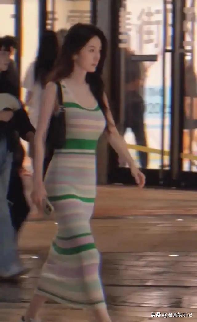 刘亦菲这条裤子挺养生,毕竟降温了肚脐眼必须护住啊