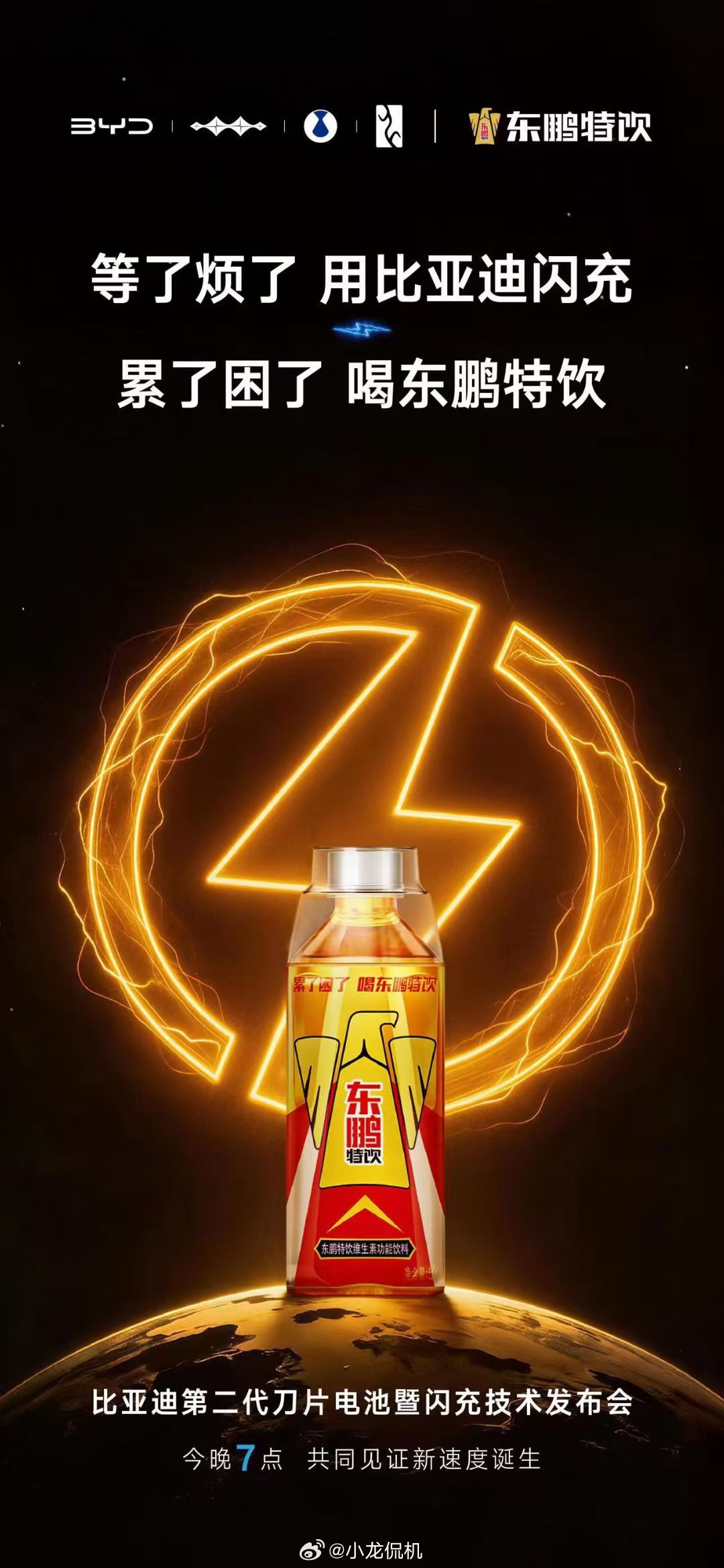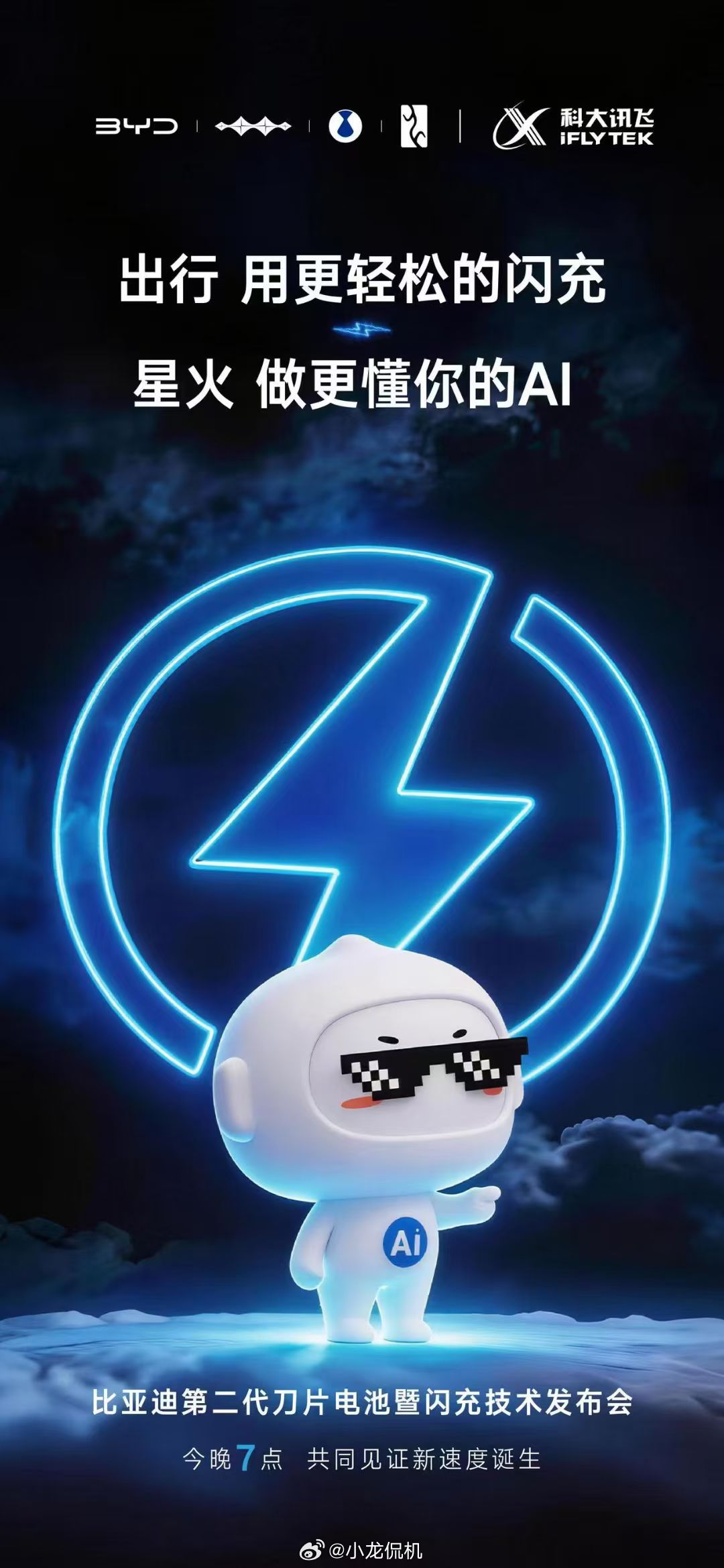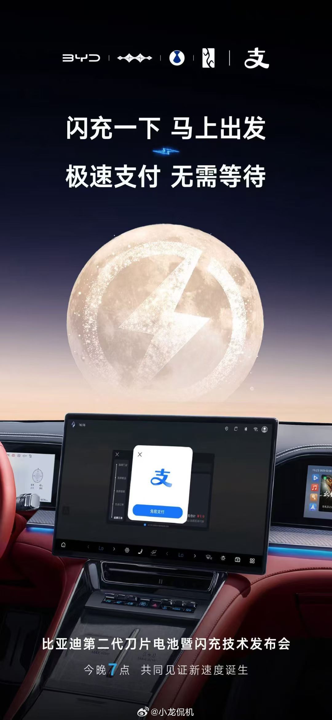 天下武功,唯快不破。生活最磨人的,从来不是远方,而是等待!这一次,比亚迪不玩虚的,直接把「速度」拉满!联合九大先锋品牌,以极致科技,让美好生活不用等、即刻享。真正的安全感,是稳稳的底气;真正的高效,是说走就走的痛快。比亚迪第二代刀片电池,安全与实力双在线,再加上重磅闪充技术,充电更快、续航更实、用车更爽,把浪费在等待上的时间,全都还给生活。不用焦虑续航,不用纠结充电,不用将就妥协。这不仅是一次技术升级,更是一场出行效率的革命——快一点,再快一点,快到让美好随时就位,快到让生活随心出发。今晚19:00,比亚迪与你一起,共启闪充新时代!用速度,惊艳全场!比亚迪闪充新时代,今晚见!