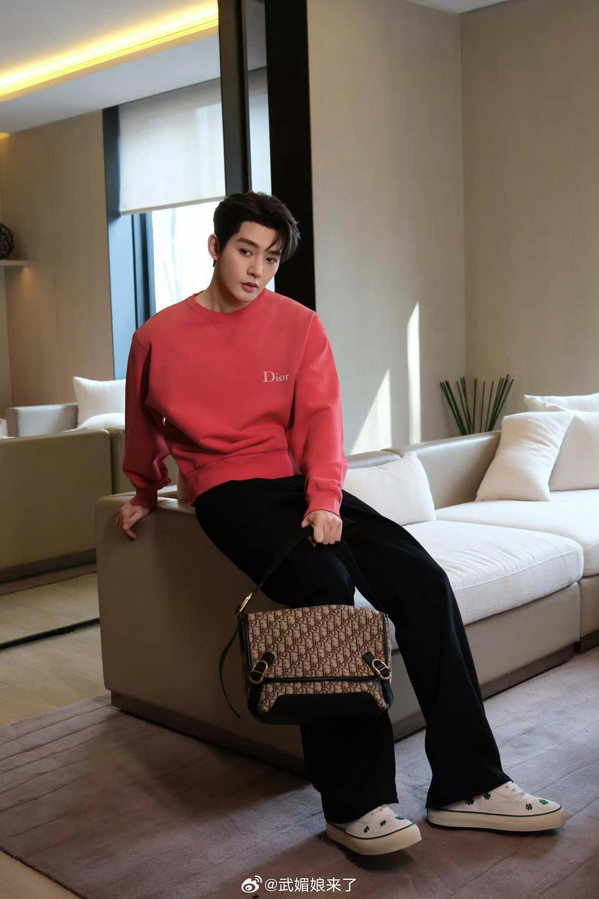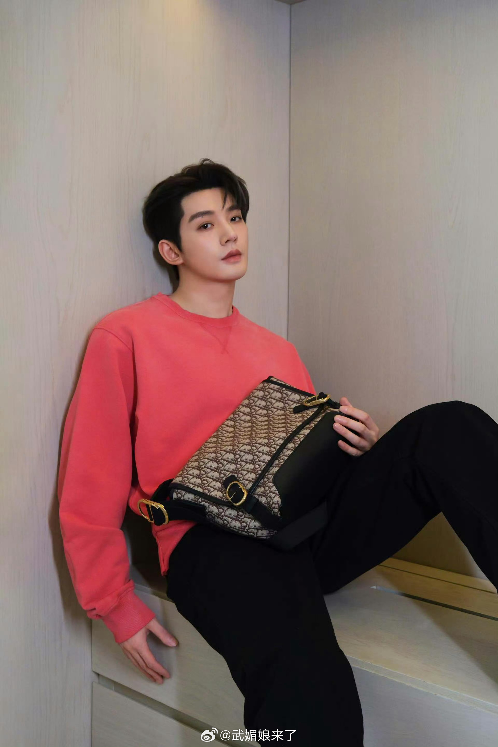 Dior男神邓为春日粉色卫衣营业,休闲又帅气