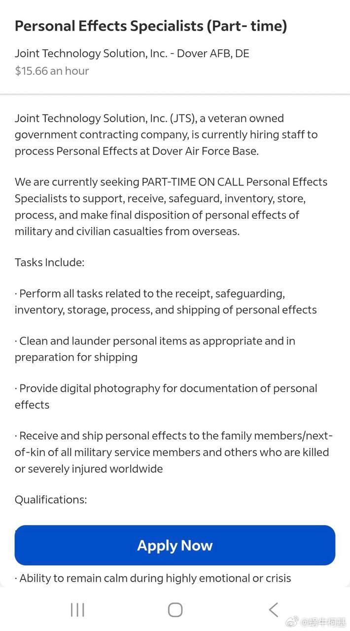 美国向以色列学会给阵亡的士兵摇号了,伊朗说美军伤亡500多人,美军目前只给6人摇号了 伊朗说美军伤亡500多人,美国否认。美军目前只给6人摇号了,但是美军军事承包商正紧急招聘人员,处理阵亡美军士兵的遗物。要是6人何至于此呀?看来美国向以色列学会摇号了。