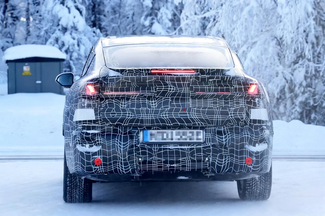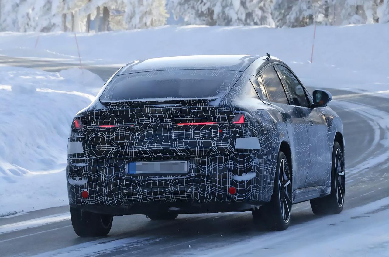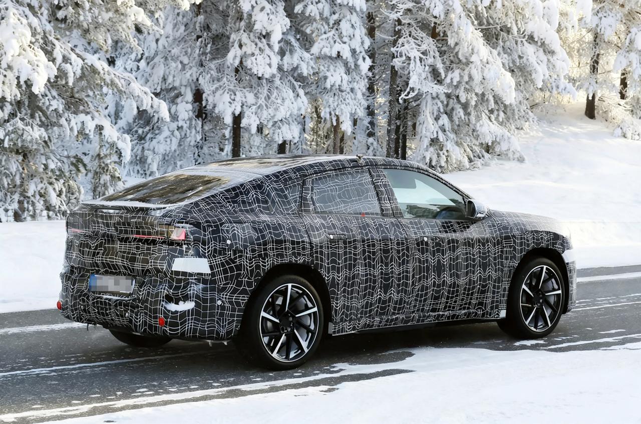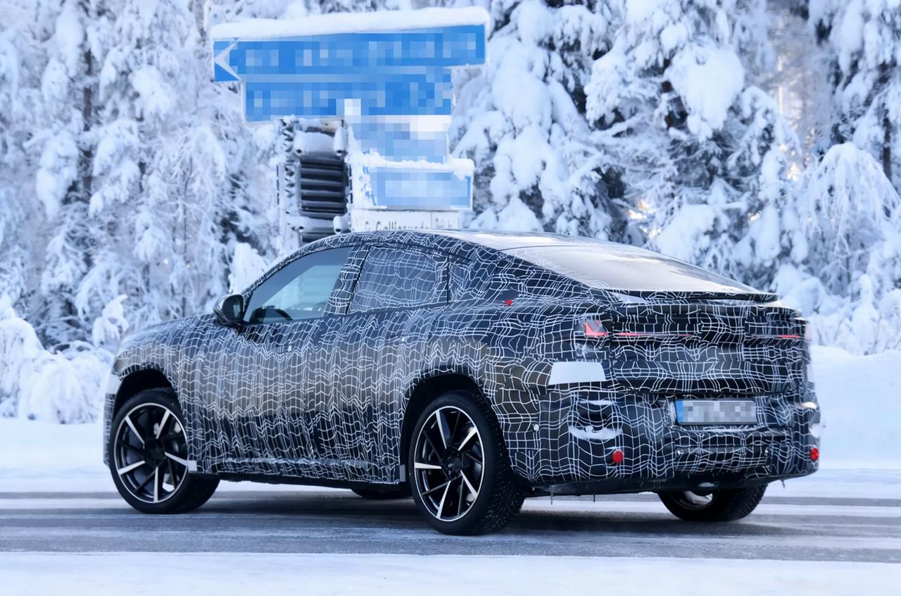 2027款宝马iX4寒冷测试谍照曝光 预计纯电平台 双电机四驱版 零百预计4.7秒 外观,前脸小尺寸熏黑封闭双肾格栅+锐利扁平大灯。下面是矩形进气口+网格装饰,两侧的导流槽来增强运动感。 车身侧面,溜背式,整体看着低矮流畅。隐藏式门把手,贯穿式腰线,预计五辐运动轮毂+红色卡钳。 尾部,棱角分明,轮廓直立。车顶有小扰流板和高位刹车灯,取消后雨刷。底部黑色包围和前脸相呼应。 动力上,基于Neue Klasse纯电平台,预计用第六代eDrive电驱系统。 预计顶配50 xDrive版 用108.7度电池,双电机四驱。最大功率预计463马力,最大扭矩预计645牛米,零百加速预计4.7秒,极速预计210km/h。 顶配续航预计805公里,预计支持800V高压快充。入门40 xDrive版预计82.6度电池。 最后,2027款宝马iX4的主要亮点: 是纯电平台,不是油改电。800V快充+大电池组,极寒测试来验证电池稳定性。 底盘调校延续运动底子,高速稳、过弯侧倾小,驾驶质感好。 溜背轿跑造型独特 有辨识度,流线车身,风阻更低。 但溜背造型有可能会压缩后排头部空间,高个子人坐容易顶头。后备箱开口和空间受造型限制,装载能力不如普通SUV。 前脸跟iX3思路差不多,小改了一些,少点自己独特的辨识度。 尾部直立轮廓与大倾角风挡,有可能会影响后方视野和停车判断。
