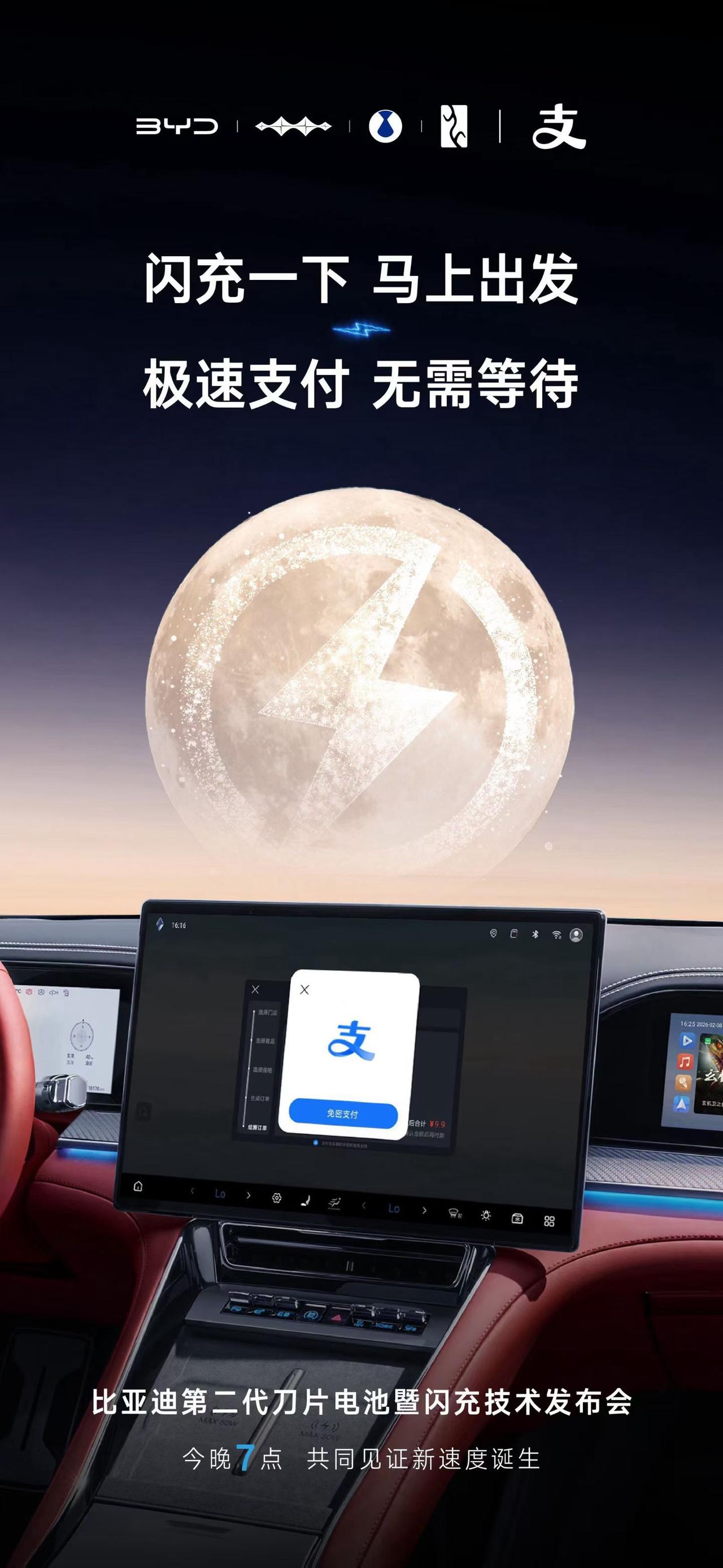 比亚迪第二代刀片电池及闪充技术发布会即将在今天晚上19点正式开启。 在发布会即将开始之即,比亚迪携手鸿星尔克、京东秒送、东鹏特饮、顺丰速运、佳通轮胎、支付宝、科大讯飞等九大先锋品牌,共同见证“第二代刀片电池暨闪充技术发布会”的开启。 天下武功,唯快不破,今年发布的第二代刀片电池+闪充技术,让充电速度快人一步,美好从不等待,大家可以猜一猜这次比亚迪新的闪充技术到底有多快?而这一技术的落地,也将补能体验得到进一步跃升。就让我们一起见证今年的发布会吧。