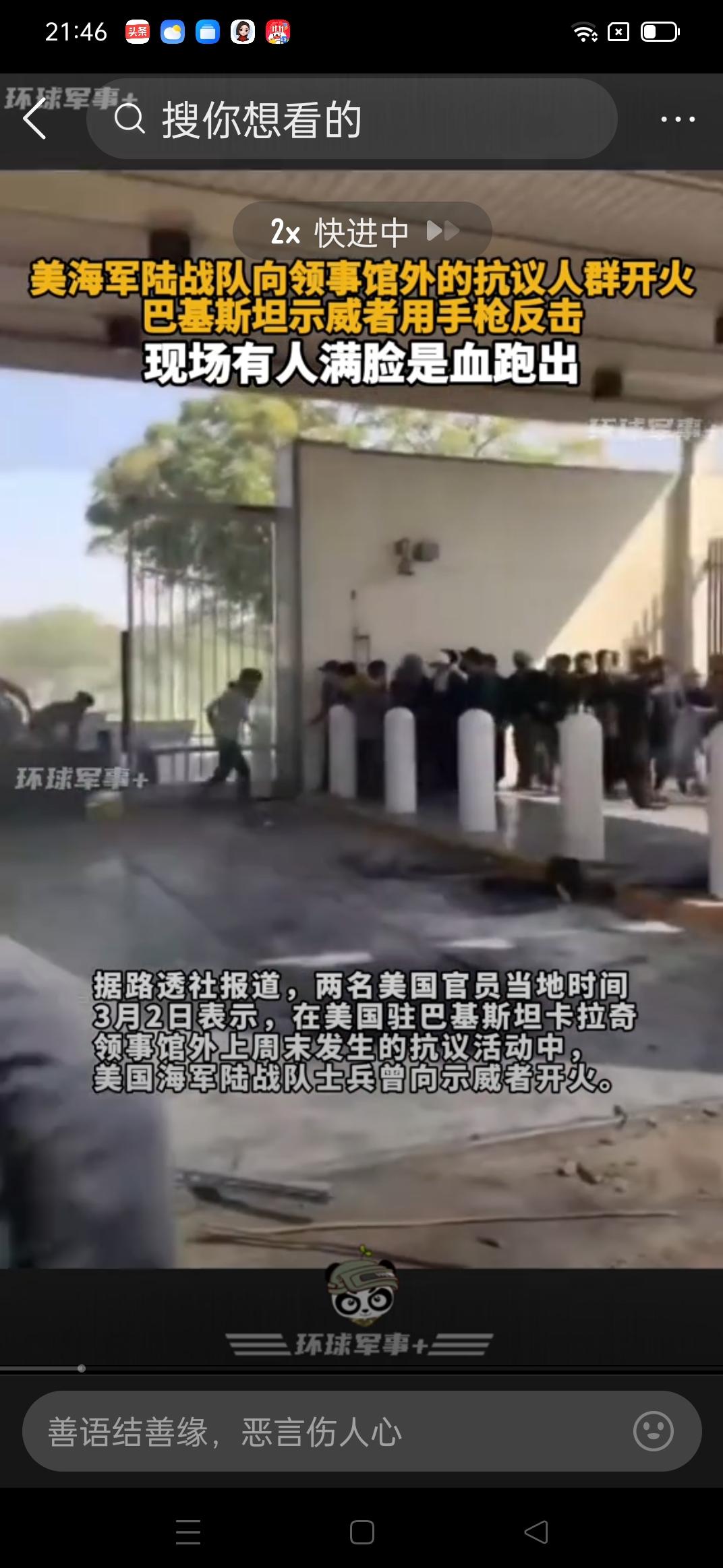 美国又创造了历史!美国驻巴领事馆士兵,向抗议人群开枪,造成死伤。 因美国轰炸伊朗、打死哈梅内伊,巴基斯坦各地民众举行反美抗议活动。美国官员证实,抗议民众遭到美国驻卡拉奇领事馆内的美军士兵射击。据媒体报道有10人死亡和多人受伤。 这一消息很快被美国官方间接证实,两名不愿透露姓名的美国官员承认,驻守领事馆的美国海军陆战队士兵向抗议人群开了枪,只是美方刻意模糊了射击是否直接造成死伤的细节,试图降低事件带来的舆论冲击。 这场冲突的爆发并非偶然,美以对伊朗的军事行动,在整个伊斯兰世界引发强烈震动,巴基斯坦国内宗教与民众情绪尤为激烈,从卡拉奇、拉合尔到首都伊斯兰堡,多地都出现聚集抗议,人们高举标语,高喊反美口号,对美国在中东的单边军事行动表达强烈谴责。 在卡拉奇,部分情绪激动的民众试图靠近甚至冲击领事馆建筑,现场随即传出密集枪声,伴随着催泪瓦斯的扩散,原本和平的示威迅速演变成流血冲突,巴基斯坦当地救援机构第一时间赶赴现场,将伤者送往医院抢救,可依然没能挽回十名民众的生命。 美国在海外外交设施派驻军队本就备受争议,这次直接向所在国民众开枪,更是突破了国际法与外交惯例的底线,按照国际通行规则,驻外使领馆的安全主要依靠驻在国警方维护,美军士兵即便负责内部安保,也没有权利对馆外平民动用致命武器。 美方一边承认士兵开枪,一边又含糊其辞,不承担直接责任,这种傲慢的态度,让巴基斯坦政府与民众更加难以接受,巴方多个省份迅速加强安全警戒,部分地区甚至实施宵禁,暂停公共活动与网络服务,避免冲突进一步扩大,美国驻巴多个领事馆也被迫暂停签证等公共服务,紧张氛围持续蔓延。 这次枪击事件看似是一次突发的安保冲突,实则暴露了美国长期奉行单边主义、随意发动军事打击带来的严重后果,美国以自身利益为出发点,无视他国主权与民众生命,在中东地区频繁发动袭击,不断挑动地区对立,如今怒火外溢到南亚,造成无辜民众死伤,美国却依然用双重标准对待,只强调自身设施安全,完全漠视巴基斯坦平民的伤亡。 国际社会普遍认为,美国的军事冒险行为正在破坏地区稳定,而驻外美军随意开枪的做法,更是对国际法的公然践踏,只会让反美情绪在更多国家蔓延。 卡拉奇的枪声不是一个孤立事件,它是美国霸权行径引发地区反抗的集中体现,当一个国家把武力当作解决问题的主要手段,把海外驻军当作威慑当地民众的工具,流血冲突就难以避免。 这场悲剧再次提醒世界,单边主义与强权政治走不通,尊重国家主权、遵守国际法、通过对话解决分歧,才是维护世界和平与稳定的正道,而美国如果继续固守霸权思维,不愿为自己的行为承担责任,未来只会在更多地方遭遇反抗,陷入更加被动的国际处境。