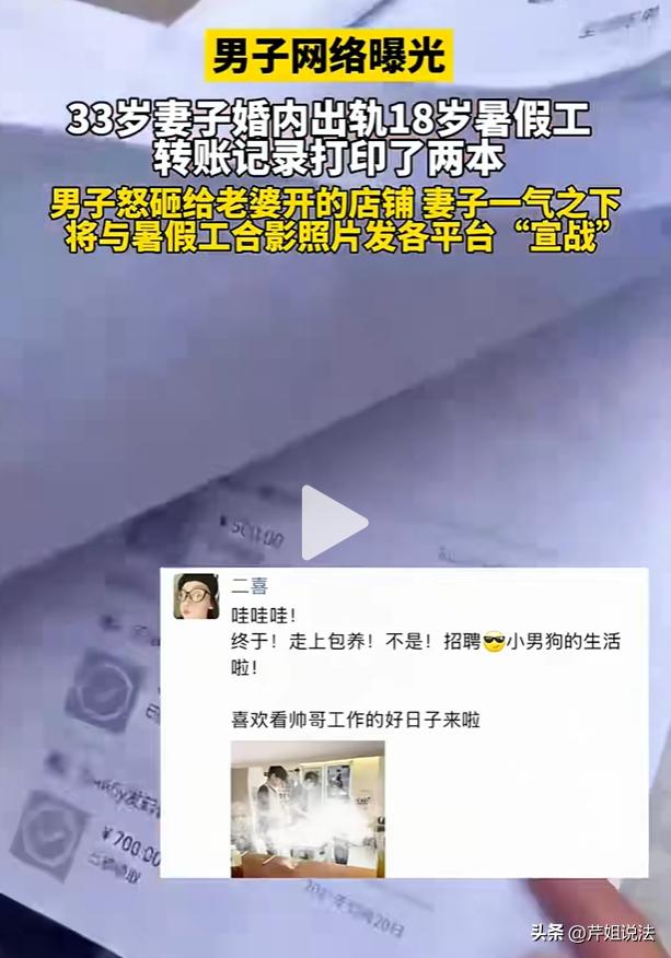 江苏,男子当场怒砸87万网红甜品店!33岁老板娘不仅不拦,还一脸淡定,转头就晒出和店里18岁暑假工的亲密合照,并配文:“活在当下,尽兴就好。”这对夫妻究竟发生了什么?老板娘为什么这么做? 男子为了帮33岁的妻子创业,他攒钱、借款,前后拿出了87万,开了一家网红甜品店。这家店是妻子二喜在负责经营,店里的甜品做得不错,吸引了很多网红来打卡,在当地也算是小有名气。 由于店里人手不够,二喜就招了几个年轻帅气的暑假工,其中一个才刚满18岁。这名18岁的小帅哥,长得很秀气,白白净净的招人喜欢。没想到已有家室的老板娘二喜会主动往18岁的“小鲜肉”身上“贴”。 平时在店里两人就眉来眼去的,趁店里其他店员不注意,还躲进后厨搂搂抱抱,行为举止非常亲密。 男子平时在外忙着做生意,经常出差,并没有发现自己的老婆与店里的暑假工的关系。 一直到去年的9月2日,男子开车回家,刚拐进车库,就看见自己的妻子和那个18岁的暑假工紧紧抱在一起,动作亲昵,不堪入眼。 他猛地踩下刹车,推开车门,愤怒地冲过去,一把拉开两人,大声地质问:“你们在干什么?” 眼见事情败露,妻子二喜脸上没有一丝慌乱和愧疚,只是轻轻地整理衣角,头也不抬地说:“你都看见了,还问什么?” 那个18岁的暑假工看到这个情形,吓得脸色发白,身子一直往后缩,害怕被男子揪出去教训,不敢抬头看男子。 男子强忍着怒火,一拳捶在了车门上,他也不想闹得太难看,咬牙切齿地说“明天,店里见,大家把话说清楚!” 第二天一早,男子停下了自己的生意,急匆匆地跑到甜品店。推开店门,只看到两三个顾客,却不见妻子二喜的身影。 他问店员,店员支支吾吾,说老板娘一早就走了,没说什么时候回来。他掏出手机,给妻子打电话,无人接听;发信息被拒收。 那一刻,男子所有的怒火,彻底爆发。看着这家自己花了87万开的店,却成了妻子和别人苟且的地方,他再也忍不住了,伸手抓起旁边的凳子,狠狠砸向柜台,“哐当”一声,玻璃碎片四溅,甜品散落一地。 他又冲过去,掀翻一张张桌子,椅子被扔得满地都是,奶油蛋糕被他狠狠抓起来,摔在墙上、地上,白色的奶油混着玻璃渣,狼狈不堪。 他一边砸,一边低吼,声音嘶哑,眼里满是绝望和愤怒,路过的路人纷纷驻足围观,有人拍照,有人议论。 砸完店,男子浑身是灰,疲惫地蹲在门口,拿出手机,把结婚证、妻子和暑假工的事情、转账记录,一一曝光到网上,他想让所有人都看看,自己掏心掏肺对待的妻子,到底是什么模样。 本以为,妻子二喜看到这些,会有一丝悔意,会为了这个家主动联系他,可二喜的操作,比砸店更让人寒心。 她没有道歉,没有解释,反而把自己的社交账号改名“永动姐”,高调晒出和18岁暑假工的亲密合照,照片里,两人笑得一脸灿烂,配文更是刺眼:“人生只是场体验,尽心玩,尽情疯,活在当下。” 更过分的是,两人的露骨聊天记录也被曝光,二喜用“永动机”形容18岁暑假工的体力,言语轻浮,丝毫没有顾及自己是有家庭、有女儿的人。 有网友爆料,老板娘二喜对家庭本就极其冷漠,一年到头在家吃饭的次数不到10次,对亲生女儿更是漠不关心,不仅打骂女儿,甚至说孩子是自己追求“自由人生”的绊脚石。 最后,这家网红甜品店关门营业,18岁的暑假工害怕受牵连,早就跑得不见踪影,连工钱都不要了。 老板娘二喜的人设一夜崩塌,不仅要面对和丈夫提出的离婚官司,还要偿还开店欠下的巨额债务,更要处理店内消费者的会员退款诉求,可真是自找苦吃。 后来有消息称,两人已经办理了离婚手续,老板娘甚至还想借着这波热度起号,把社交账号从私密设为公开,只是删除了和小男友的相关视频,引来网友一片唾骂。 老板娘的婚内出轨,到底要承担什么后果? 根据《民法典》第 1062 条、第 1092 条规定,夫妻共同财产需双方共同处分,女方婚内私自将财产赠与他人,无论对方是否知情,赠与均无效,男方可起诉要求全额返还。 老板娘如果在婚内,偷偷把夫妻共同财产赠与那个18岁的暑假工,比如转账、买礼物,男主有权起诉,要求那个暑假工全额返还,不管暑假工知不知道老板娘已婚,这份赠与都是无效的,因为夫妻共同财产,必须双方共同同意才能处分,老板娘单方赠与,不算数。 最后想问大家,你觉得老板娘的所作所为,该受到更严厉的惩罚吗?