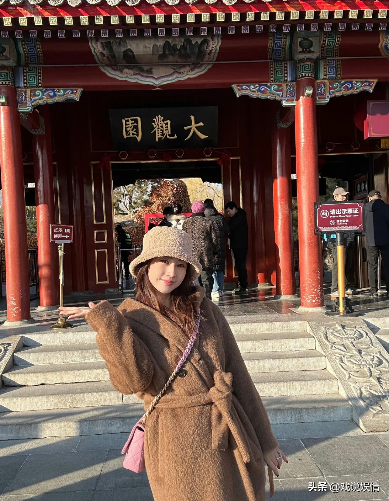 贾晓晨游北京大观园! 3月5日,樊少皇妻子贾晓晨分享了一组北京大观园的游客照,她称这是在北京住了这么多年,第一次参观大观园。 照片中的贾晓晨身穿棕色毛绒大衣,头戴同色系毛绒渔夫帽,背着粉色斜挎包,留着棕色披肩长发。 在大观园入口处拍照留念的贾晓晨,看起来心情颇为不错,笑容灿烂,和照在脸上的阳光一样灿烂。 大观园里光影交错,古韵流转,竹影摇曳,值得一看!