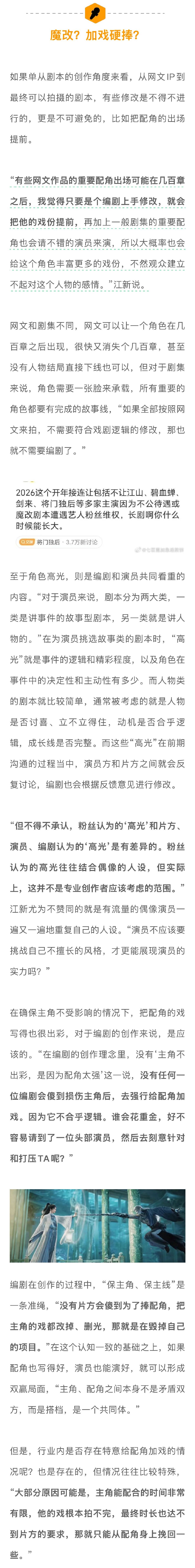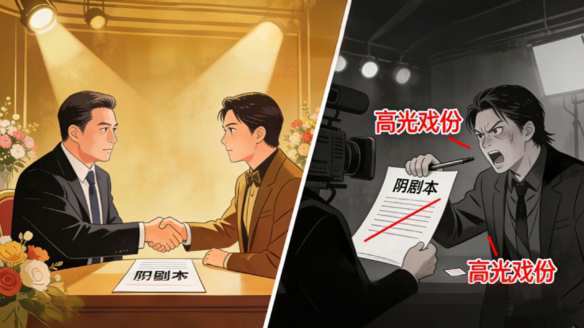 业内否认为捧配角删主角高光 内娱真的存在阴阳剧本吗 在各大平台和制作公司都在收紧项目的当下,“阴阳剧本”真的还存在吗?编剧江新(化名)给的回答很肯定:“存在。”但“被阴阳”的主体并非网友们认为的演员和片方,而是编剧。“定稿之后改剧本的原因,每个剧组都不一样。导演要改,男女主也要改,大家都有自己的利益考量或者私心…”娱理独家↓